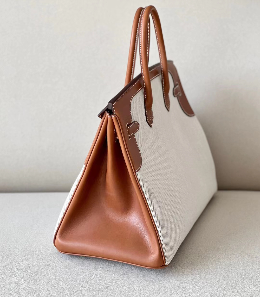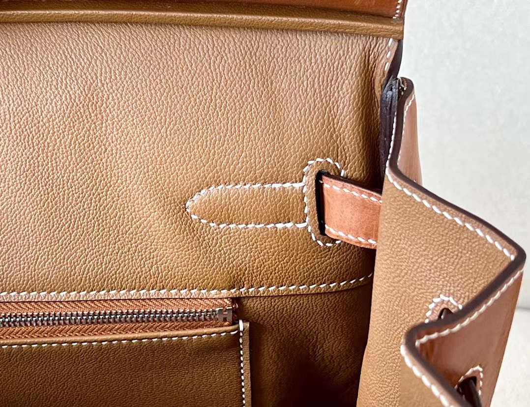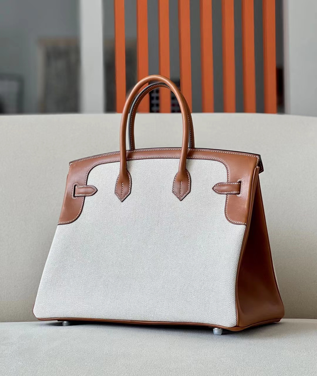 DesignerReps Birkin GARGO canvas & Barenia Brown & White & Blue Silver Hardware 35cm Full Handmade