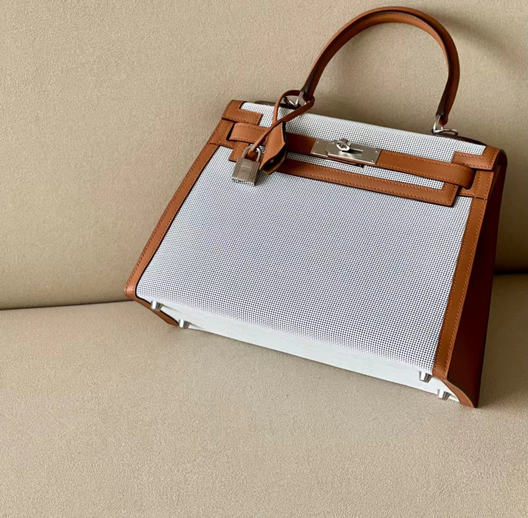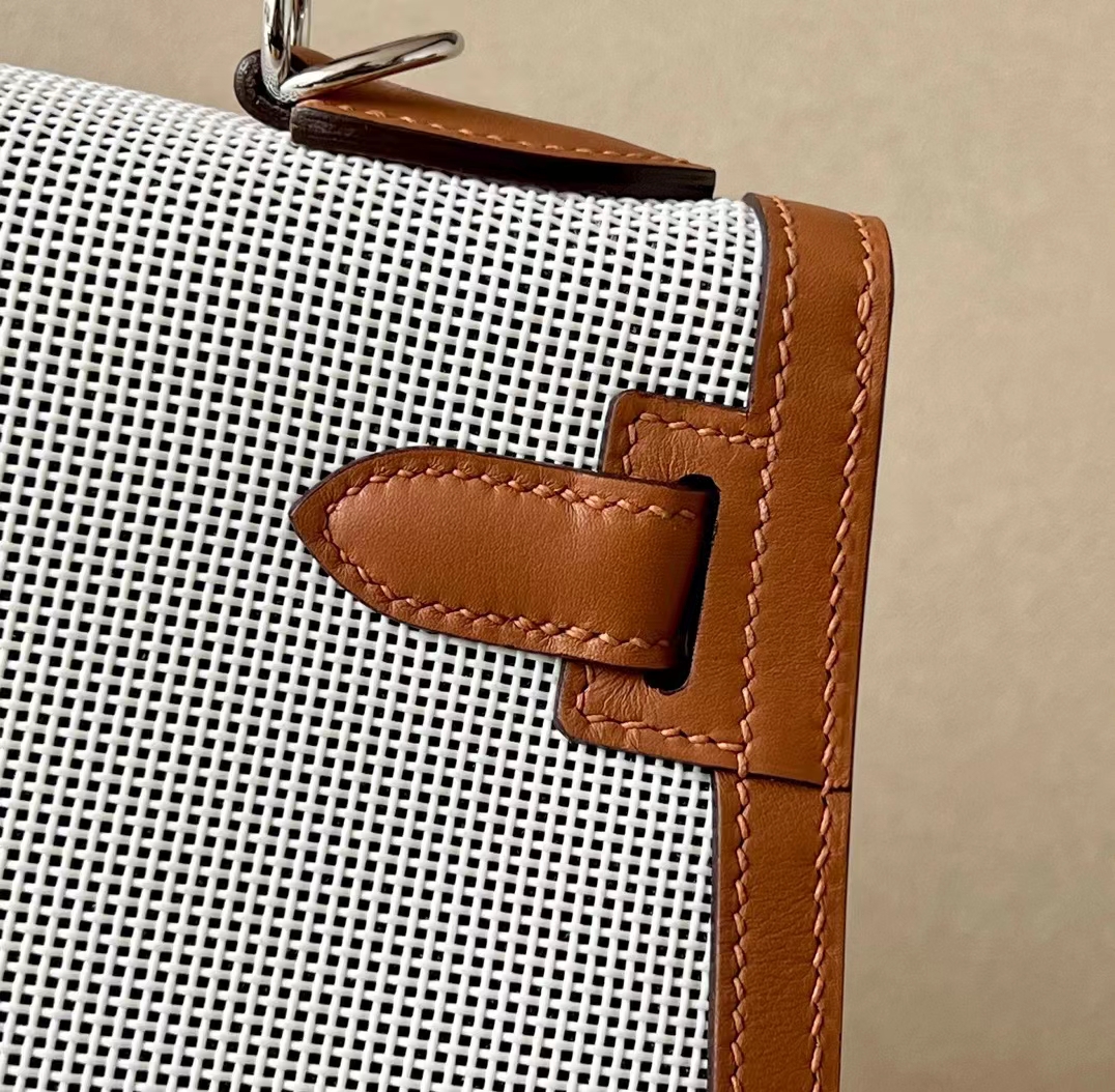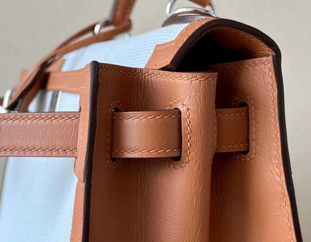 DesignerReps Kelly Swift & tolieh Canvas Golden Brown Silver Hardware 28cm Full Handmade