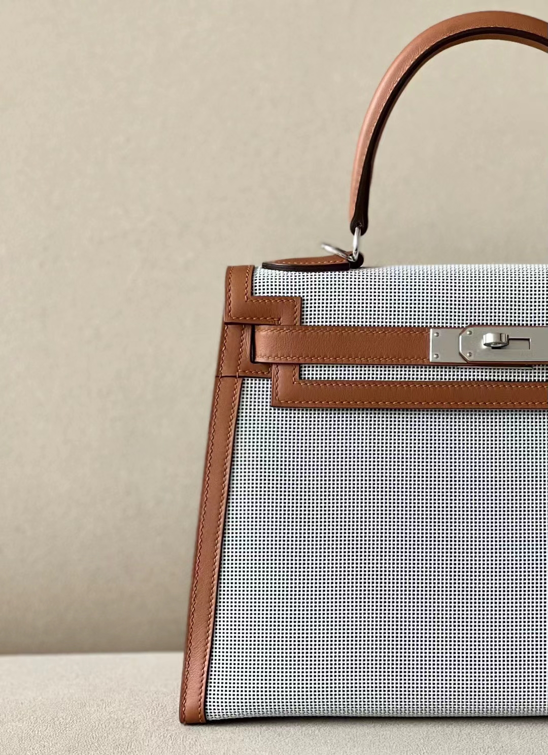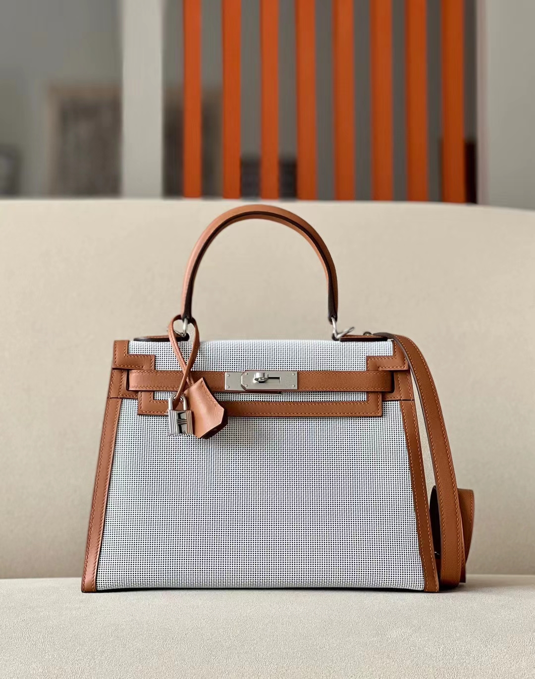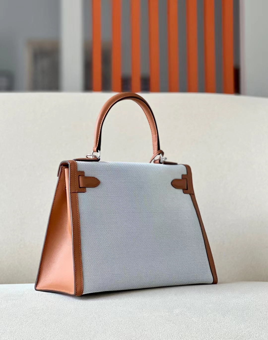 DesignerReps Kelly Swift & tolieh Canvas Golden Brown Silver Hardware 28cm Full Handmade