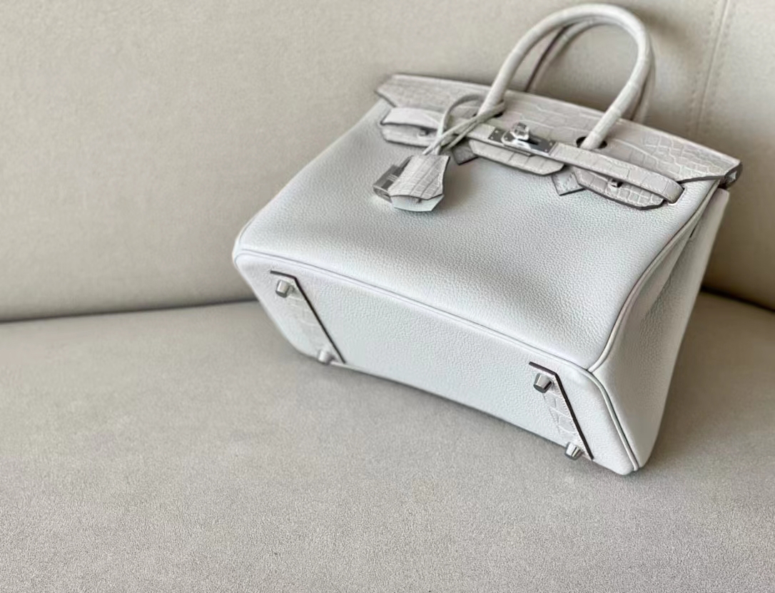 DesignerReps Birkin Togo & Matte Alligator 8L Ice White Silver Hardware 25cm Full Handmade