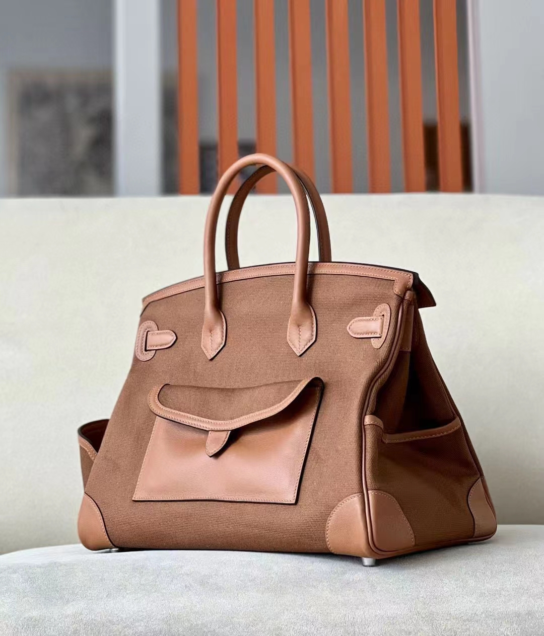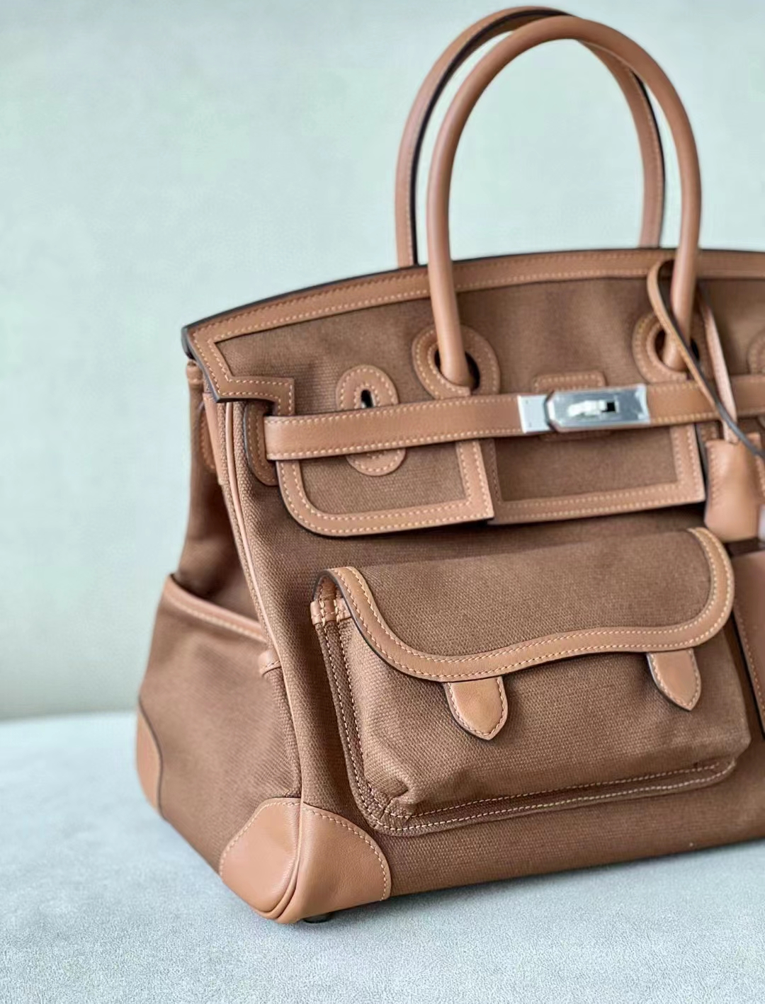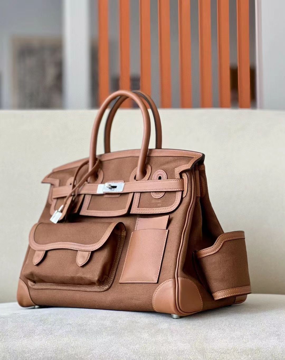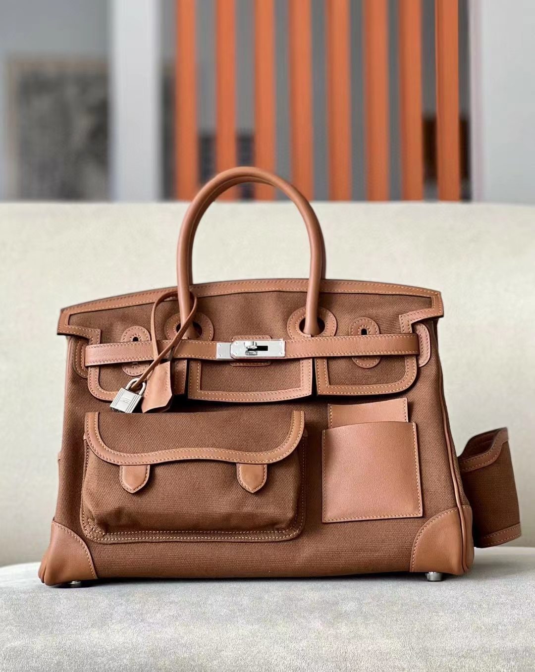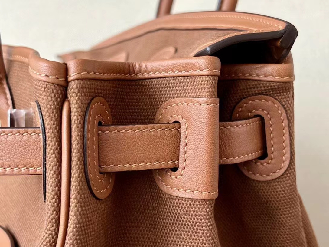 DesignerReps Birkin Cargo Canvas & Swift CK37 Golden Brown Silver Hardware 35cm Full Handmade