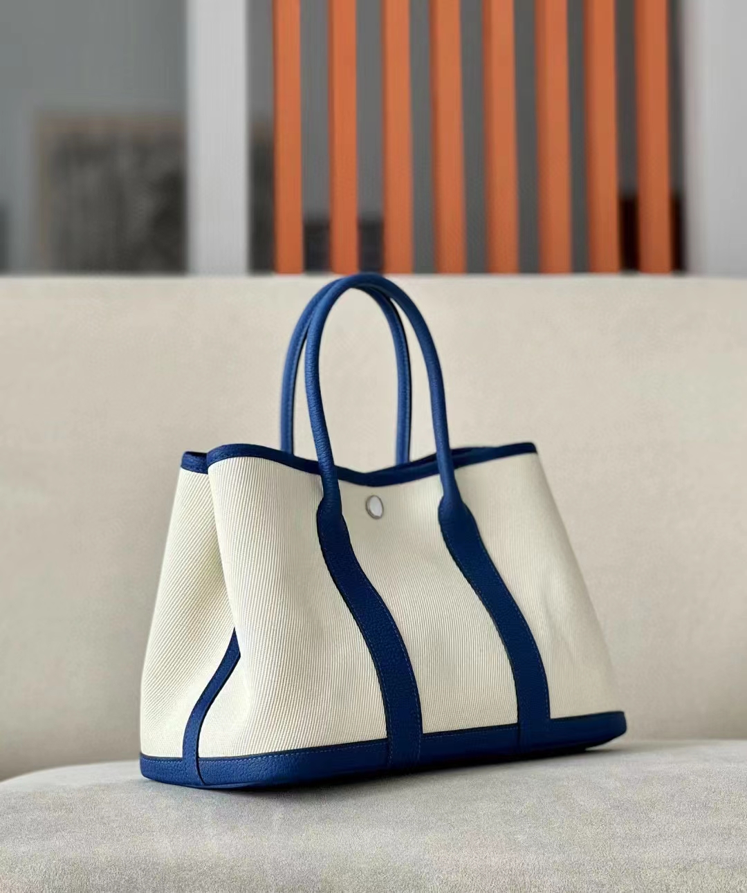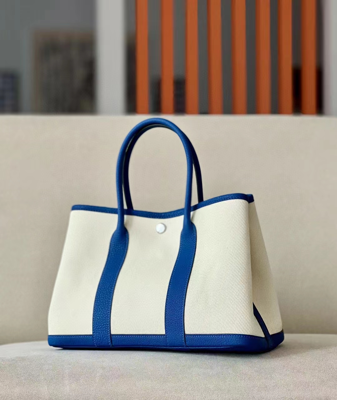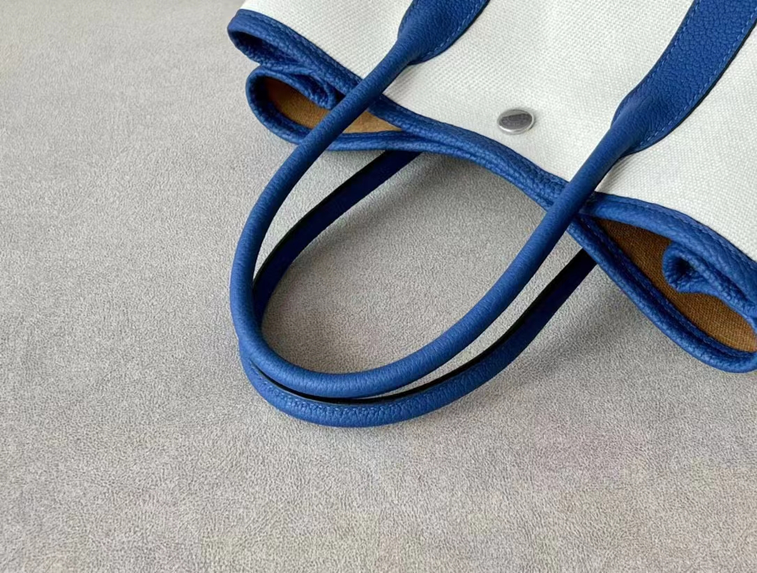 DesignerReps Garden party TC & Canvas Blue & Ice White & Sand Yellow Silver Hardware 30cm Full Handmade