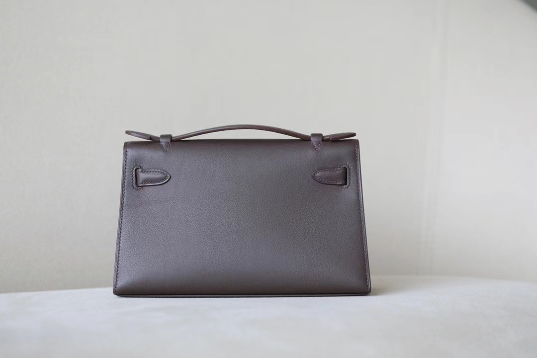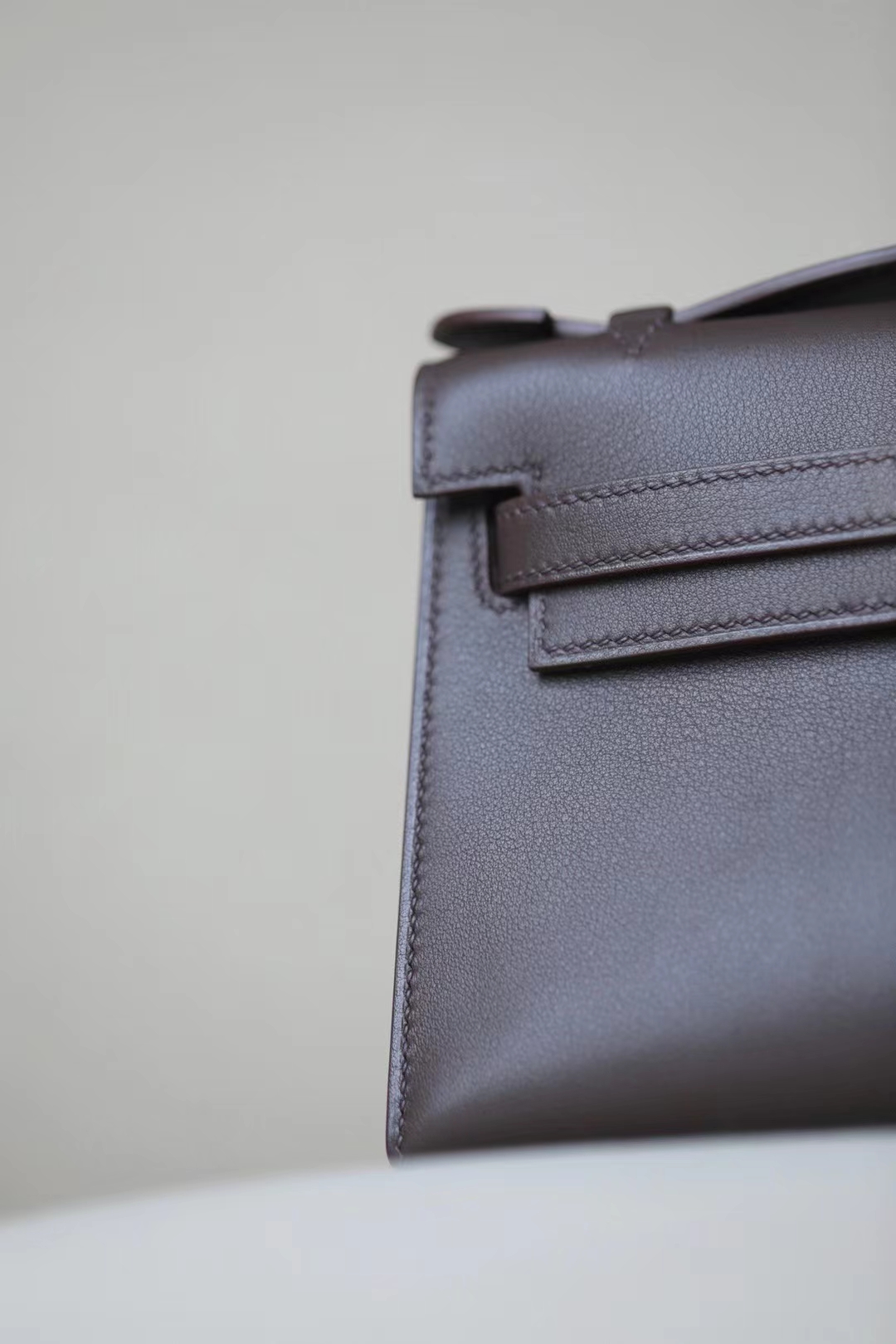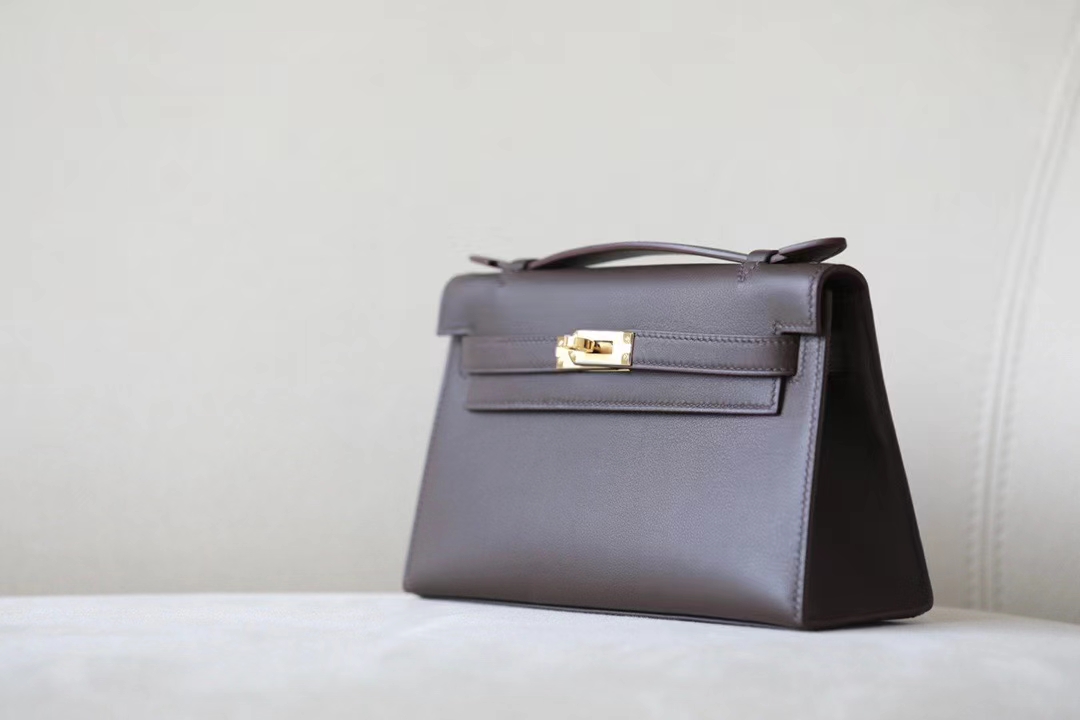 DesignerReps Mini Kelly pochette Swift Leather Coffee Gold Hardware 22cm Full Handmade