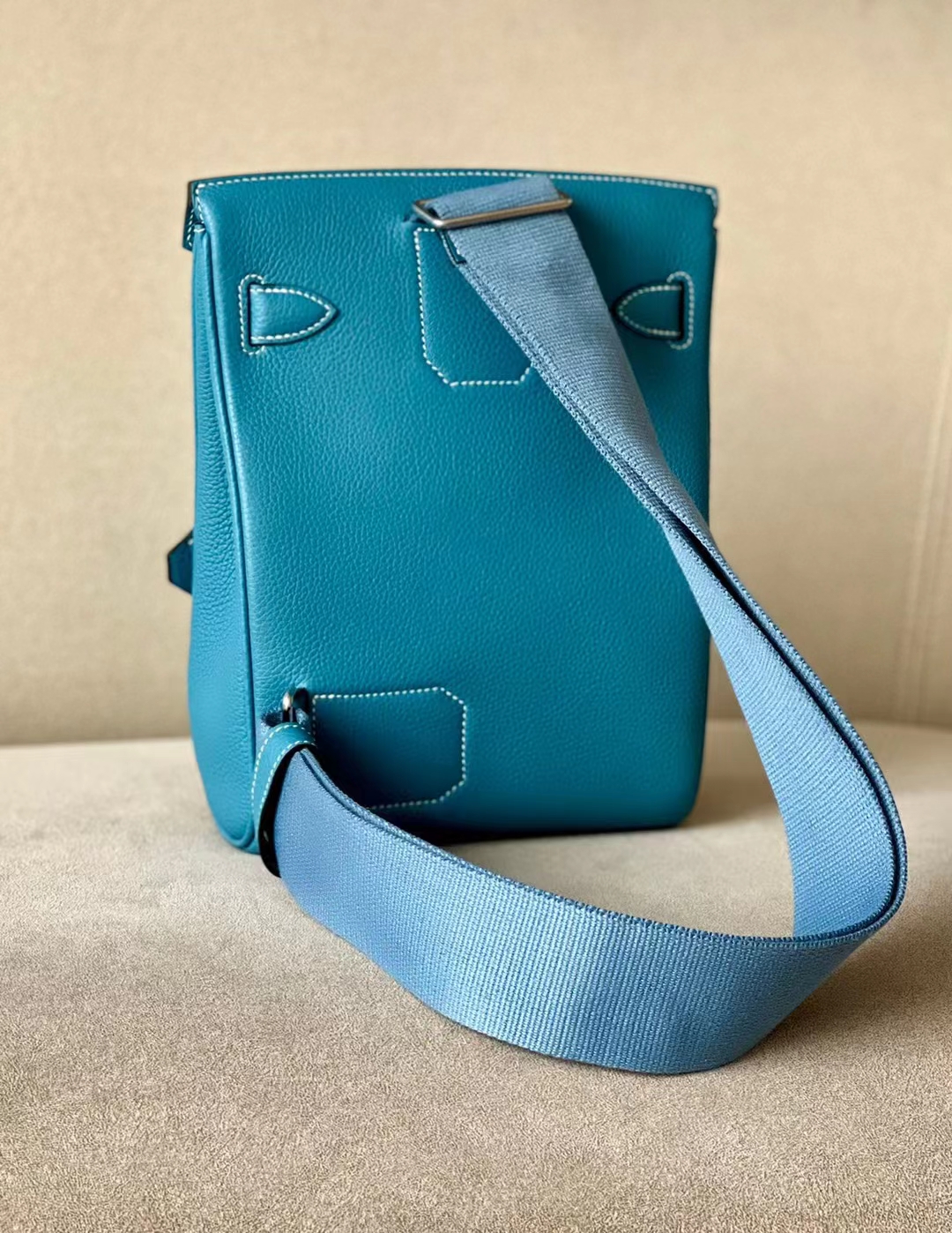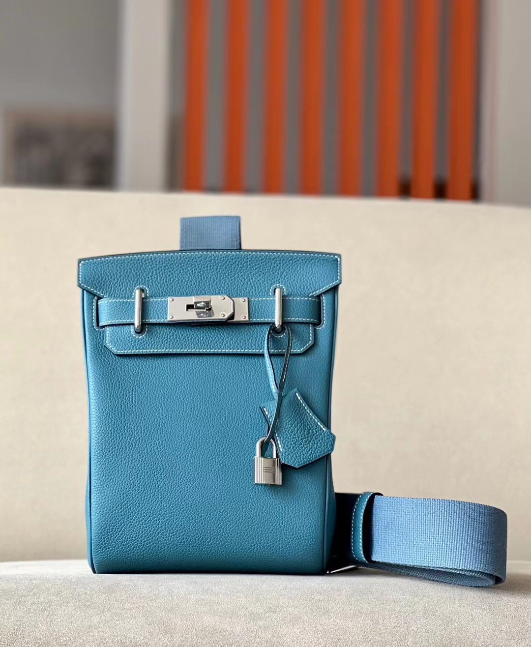 DesignerReps Kelly hac a dos Togo CK75 Denim blue Silver Hardware 22cm Full Handmade
