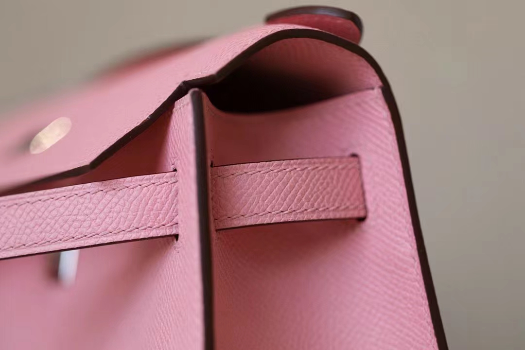 DesignerReps Mini Kelly Pochette Epsom Pink Silver Hardware 22cm Full Handmade