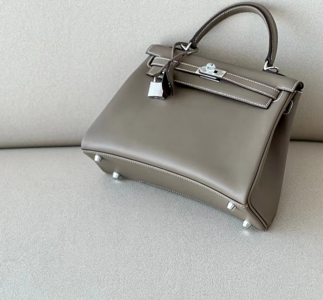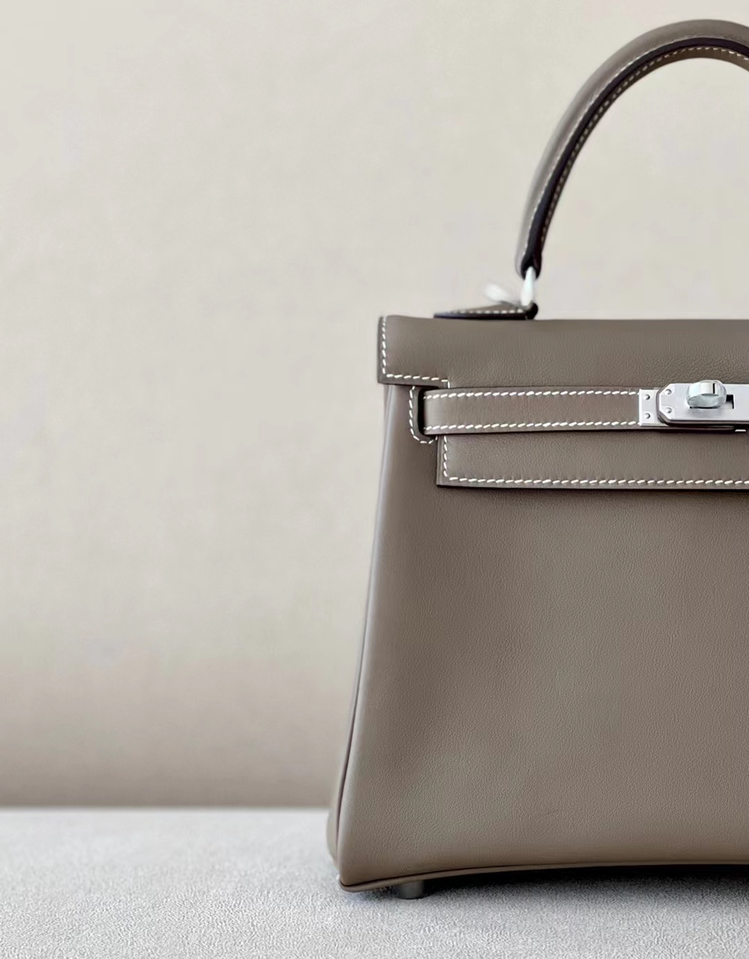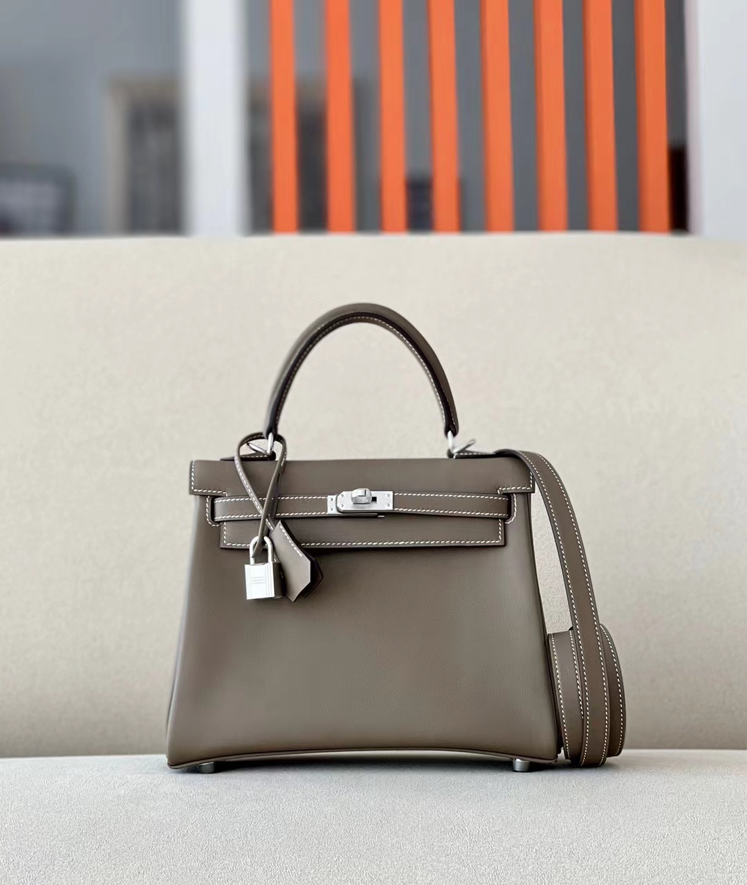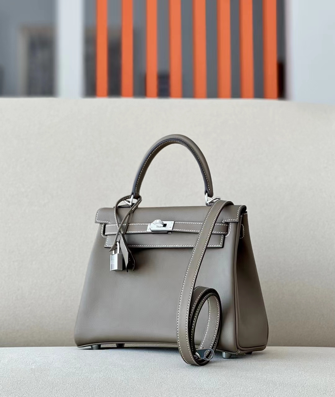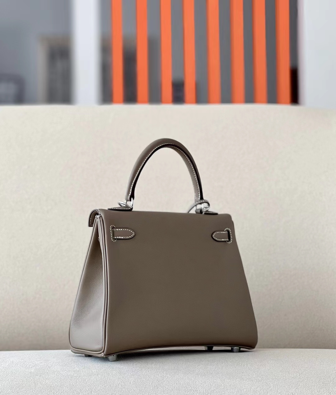 DesignerReps Kelly Swift Leather CK18 Etoupe Grey Silver Hardware 25cm Full Handmade