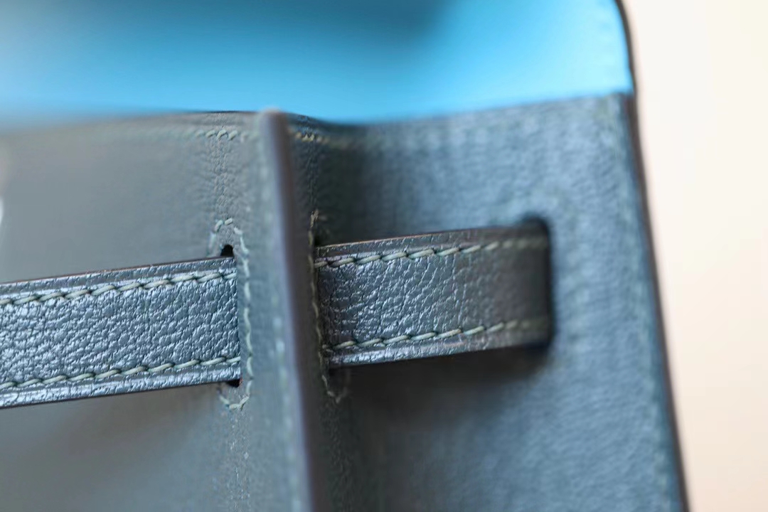 DesignerReps Mini Kelly Chevre Leather Cypress green & Blue Silver Hardware 19cm Full Handmade