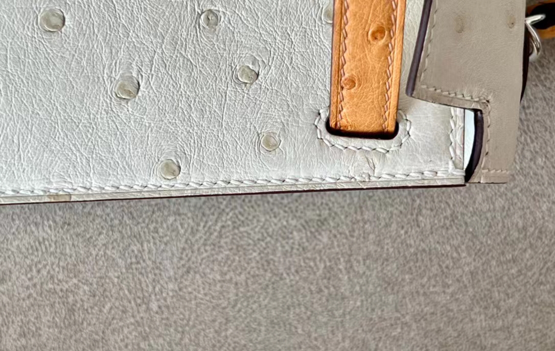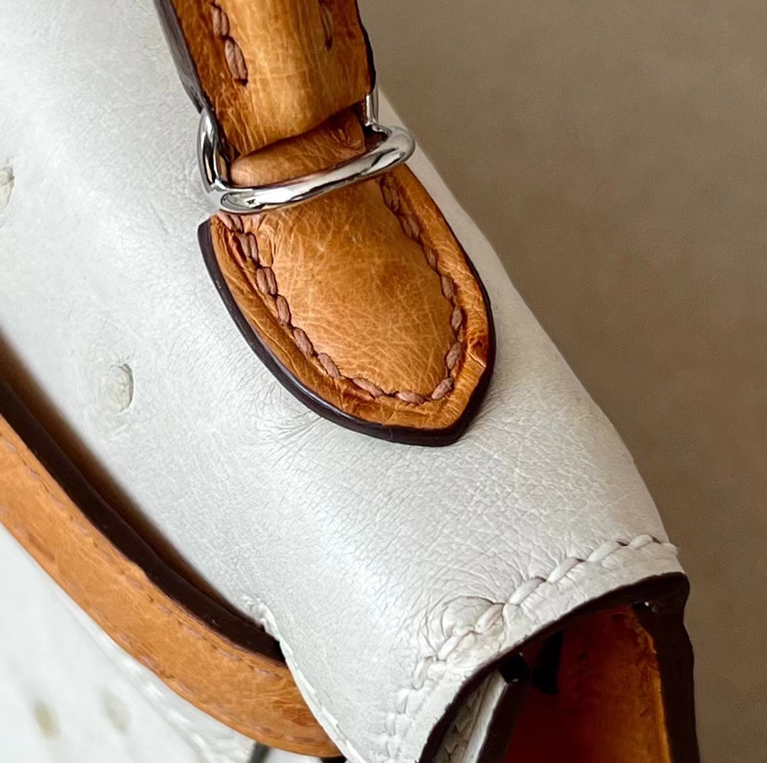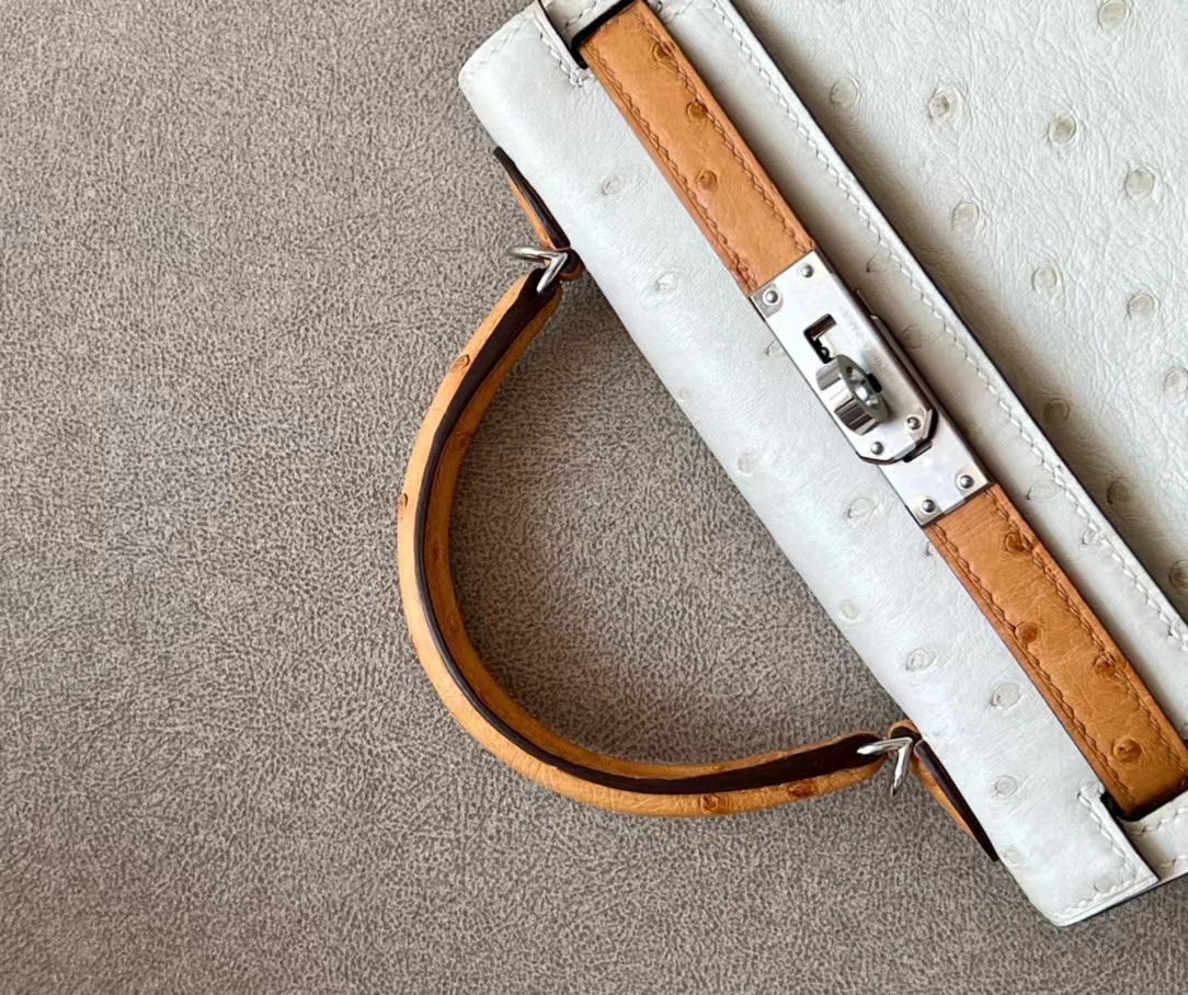 DesignerReps Mini Kelly Ostrich 8L Ice White & 22 Desert color Silver Hardware 19cm Full Handmade