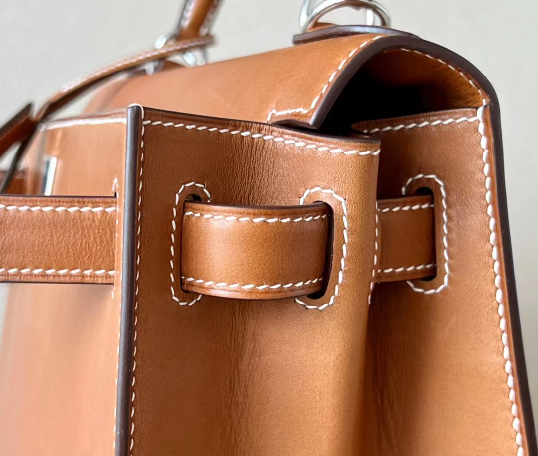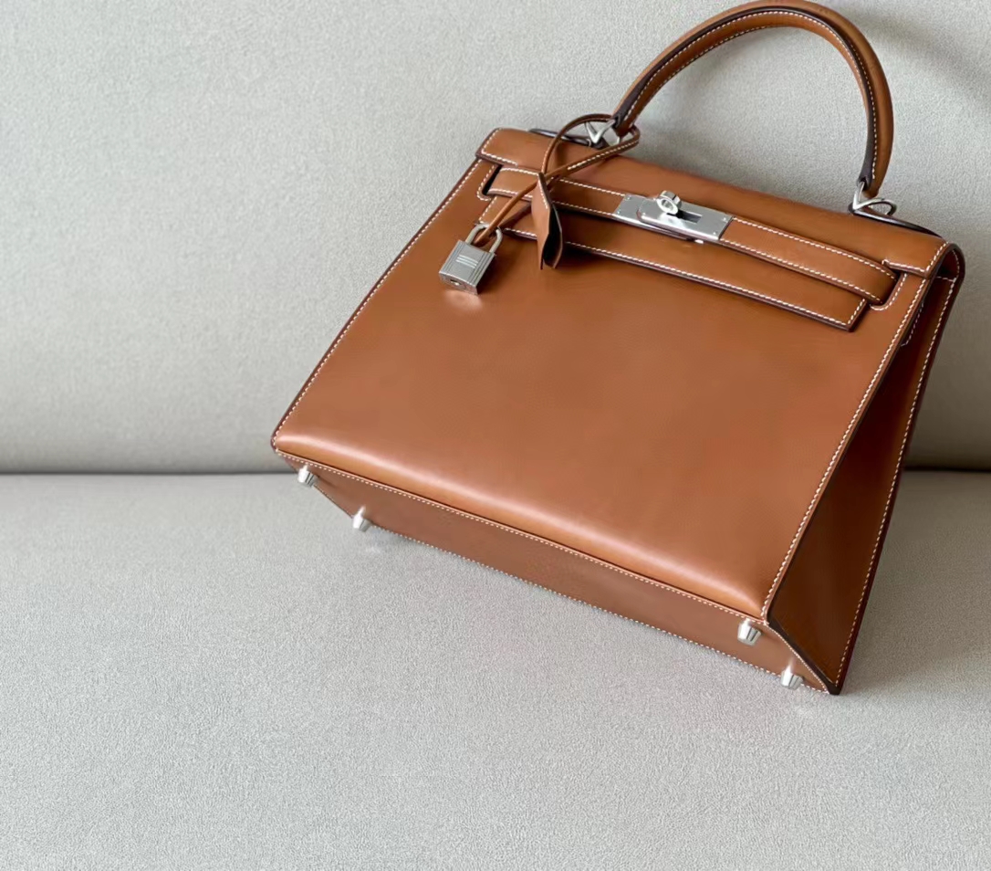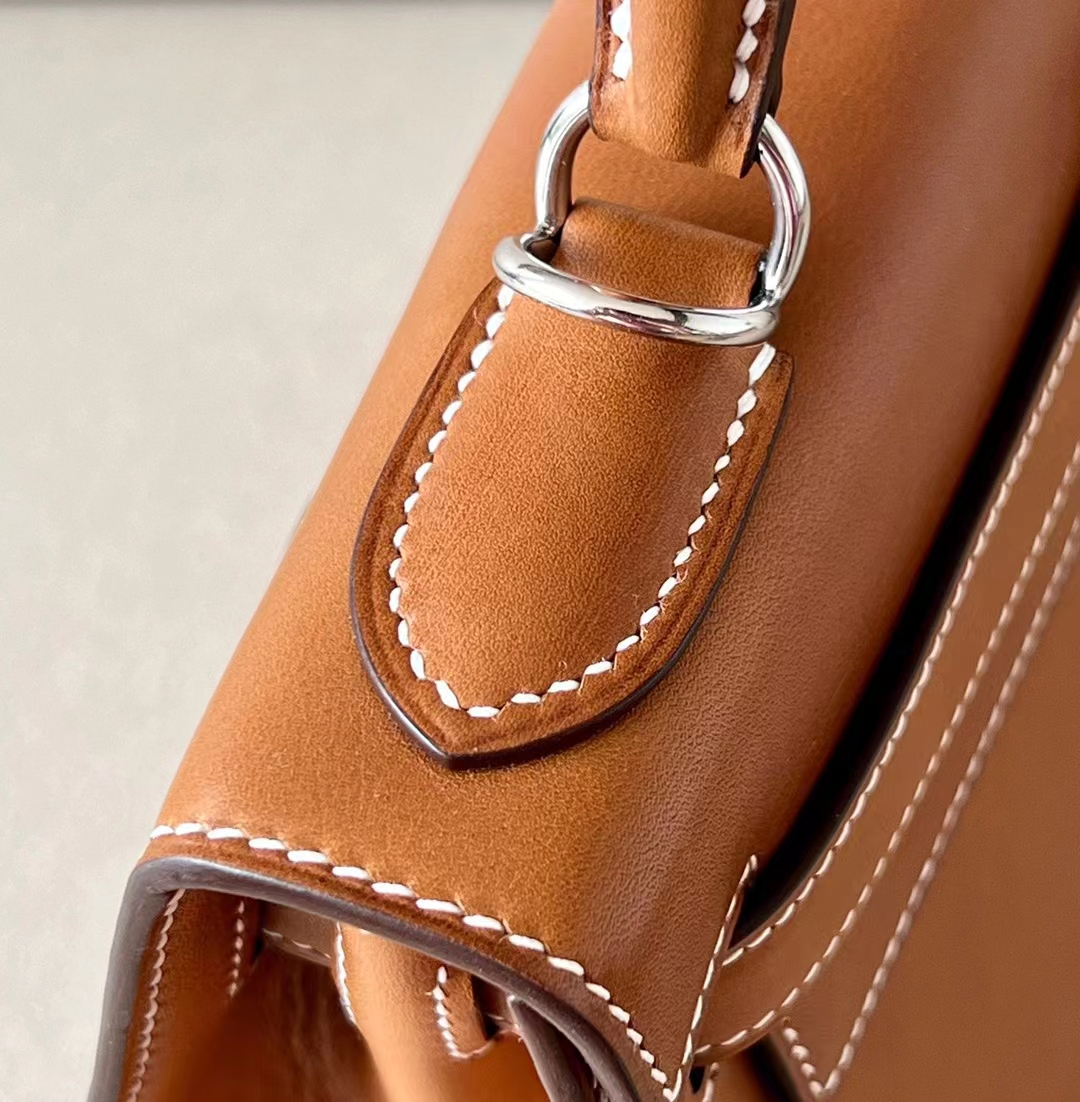 DesignerReps Kelly Barenia CK37 Golden Brown Silver Hardware 28cm Full Handmade