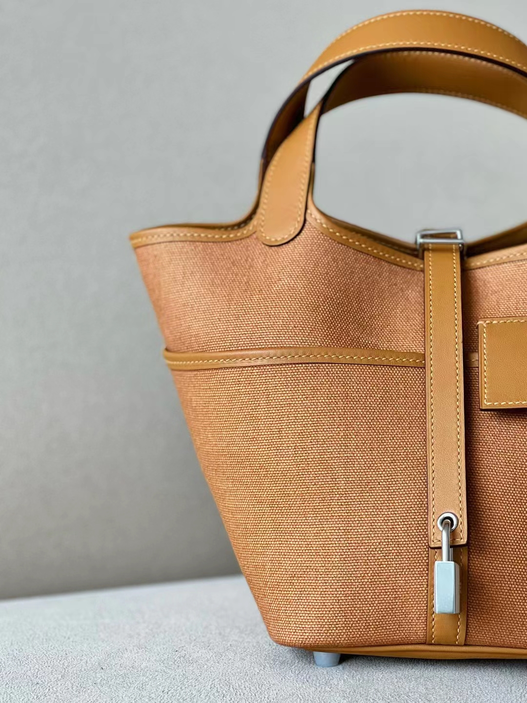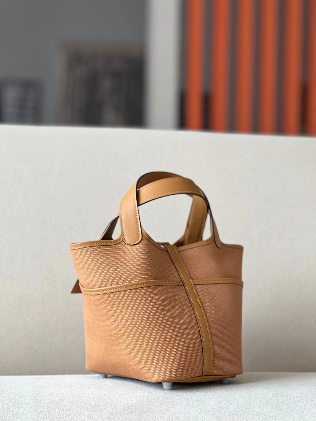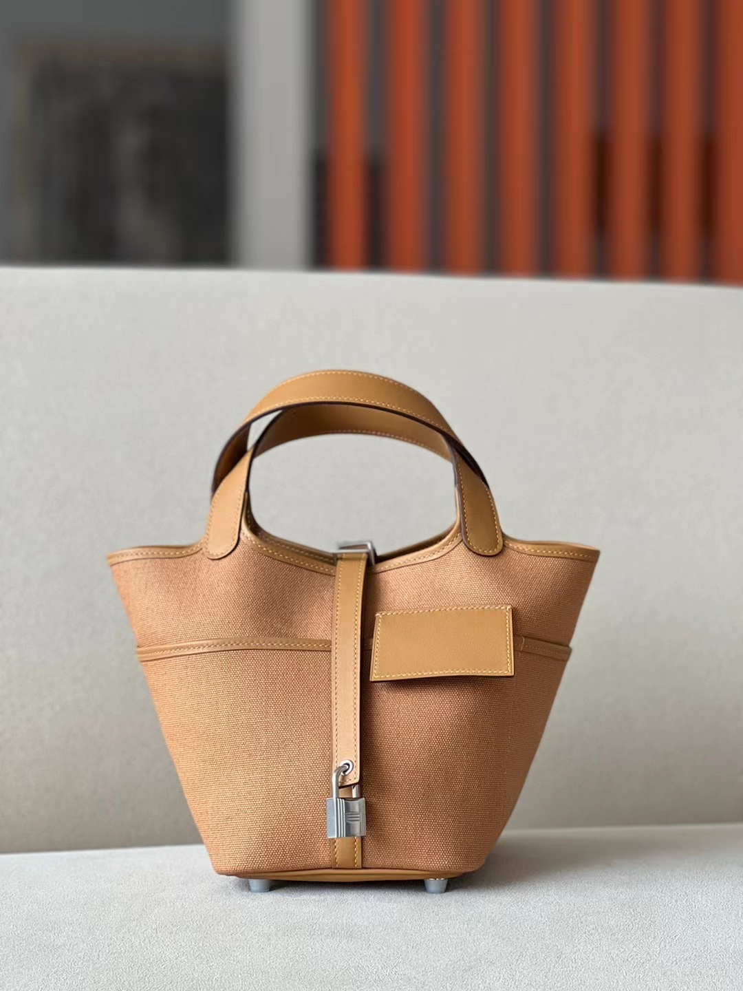 DesignerReps Picotin Canvas & Swift 4B Biscuit Khaki Silver Hardware 18cm Full Handmade
