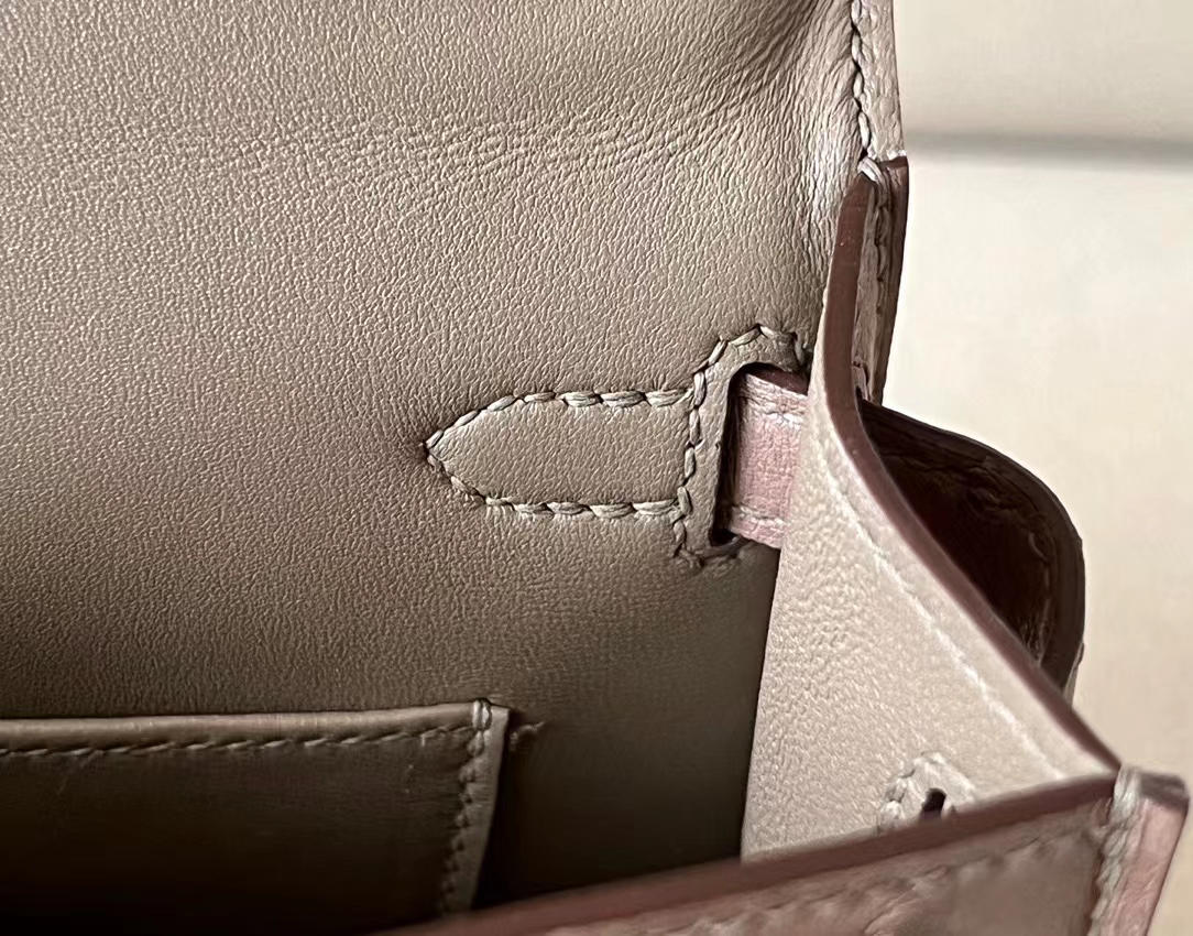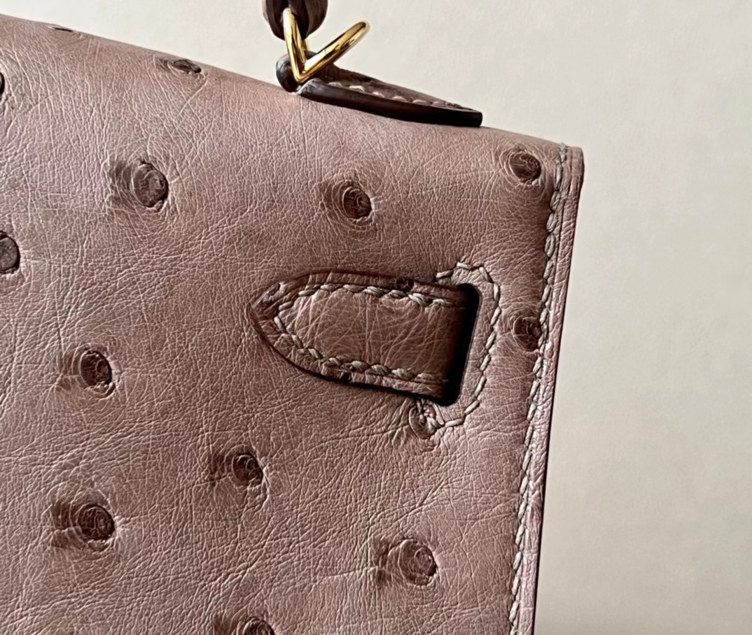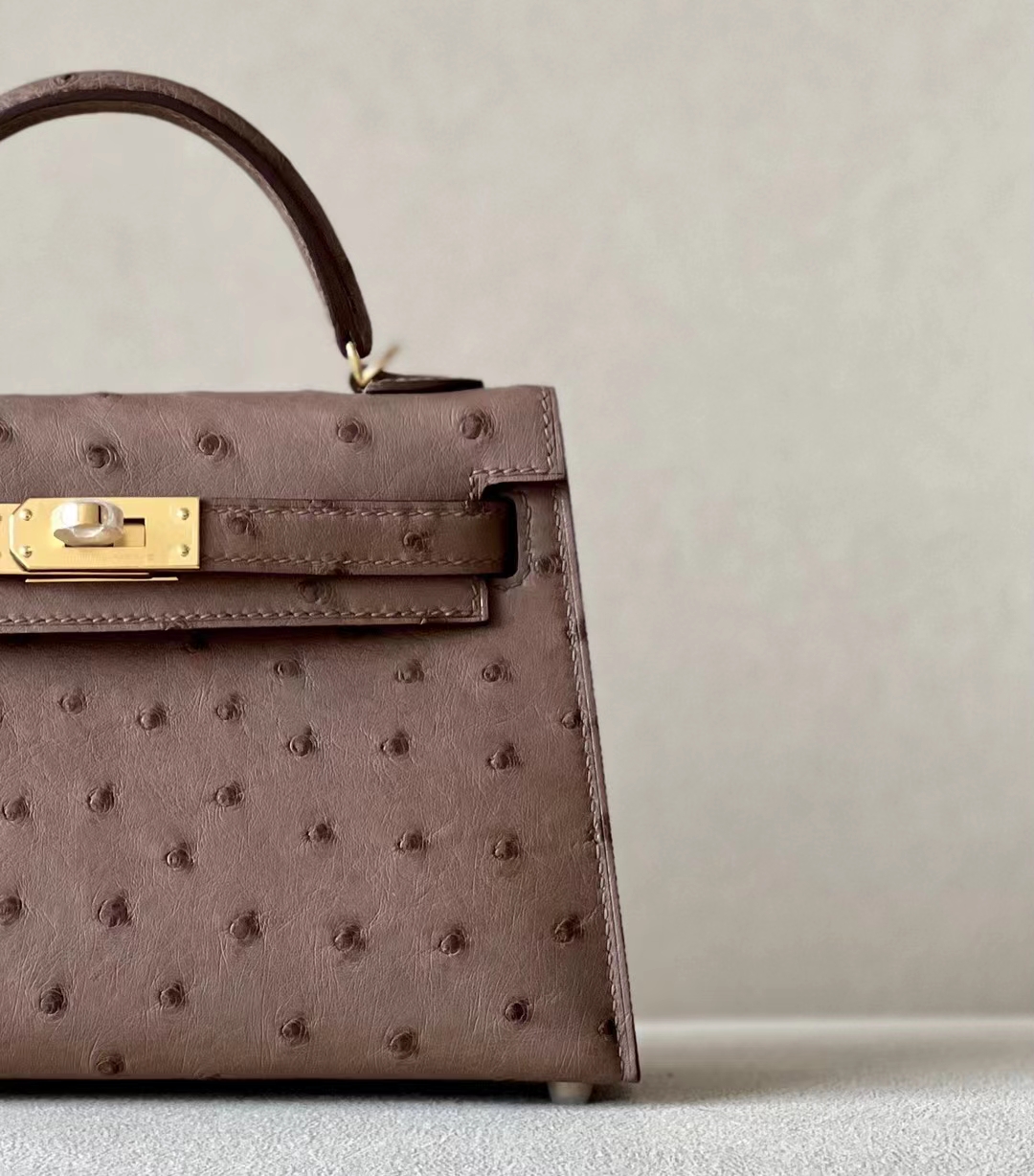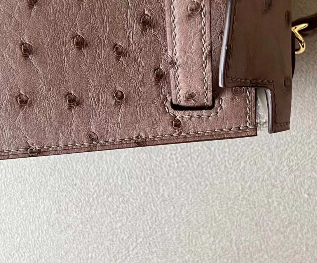 DesignerReps Mini Kelly Ostrich Khaki Gold Hardware 19cm Full Handmade