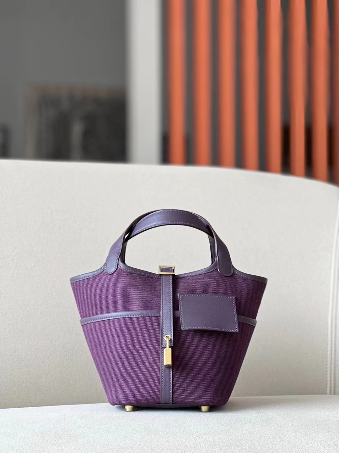 DesignerReps Picotin Canvas & Swift N5 Blackcurrant purple Gold Hardware 18cm Full Handmade