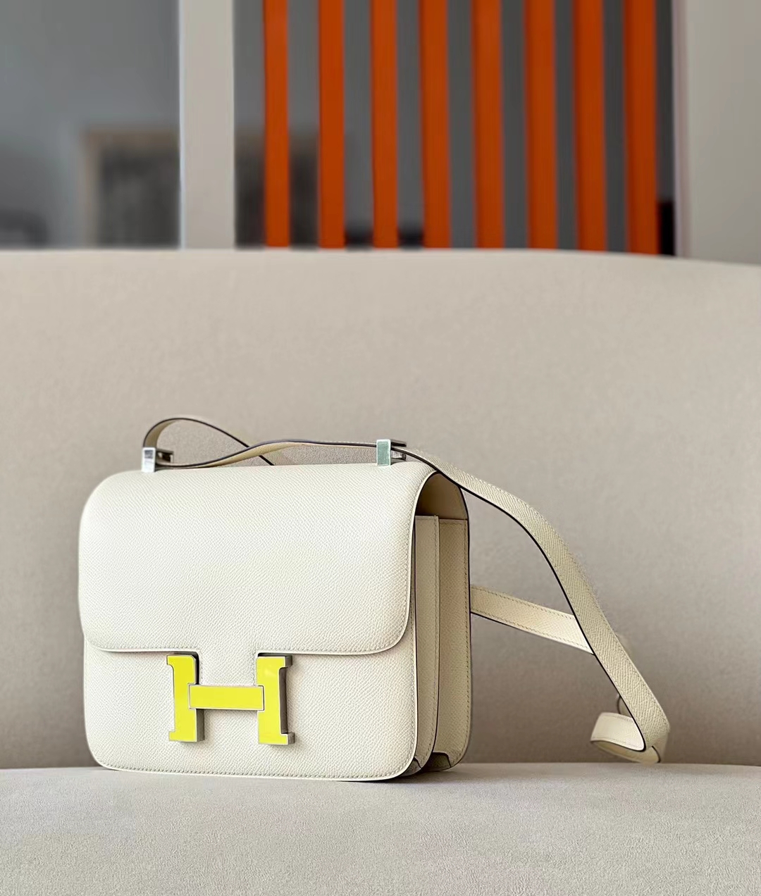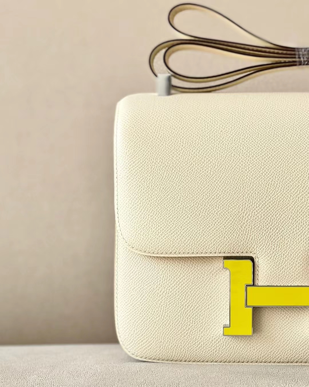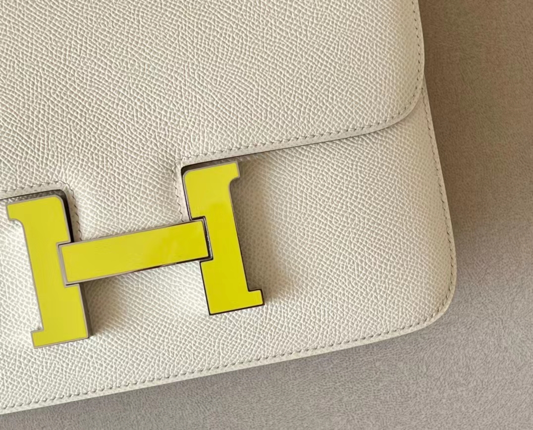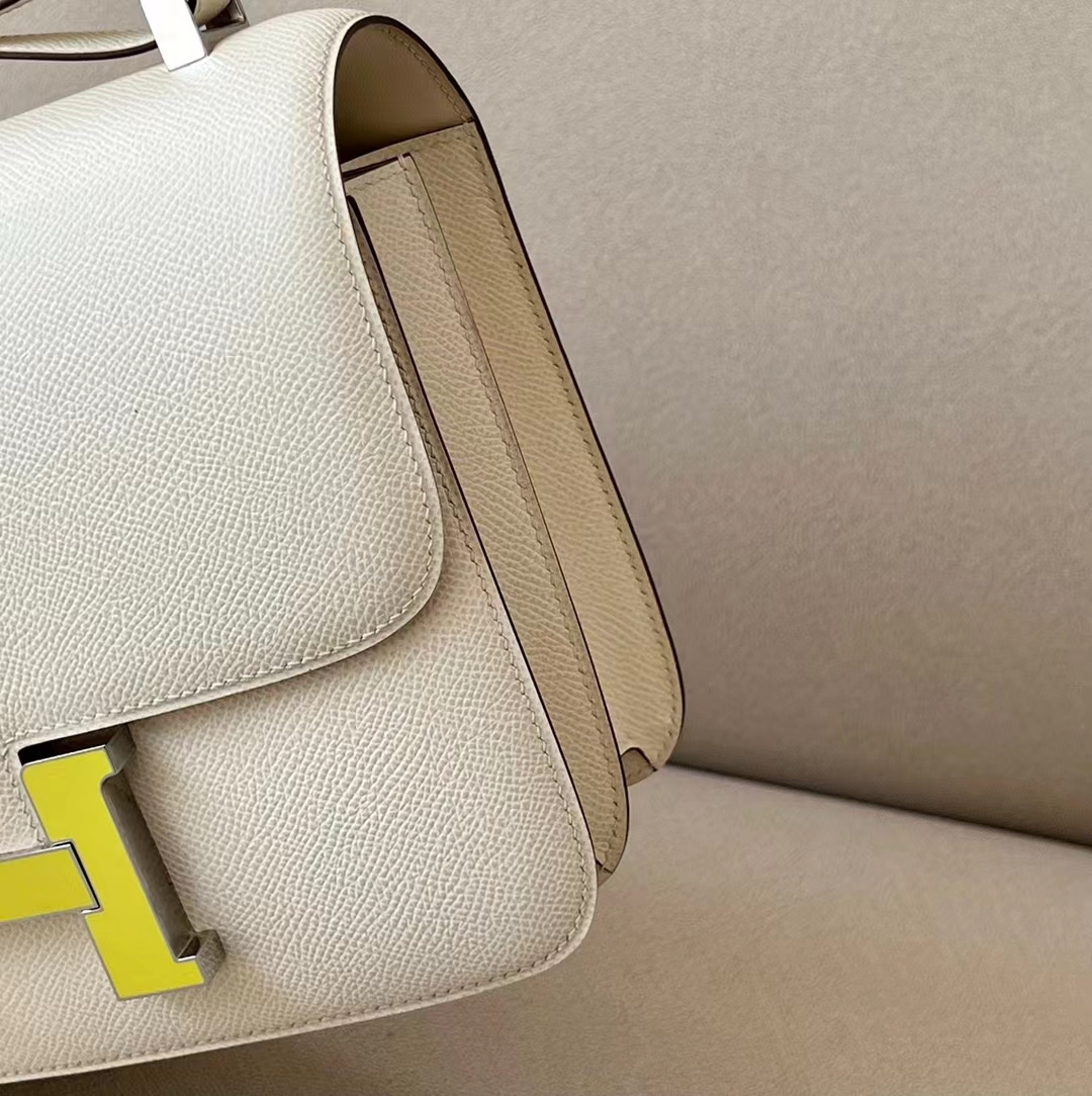 DesignerReps Constance Epsom Creamy White Light Yellow Buckle Silver Hardware 23cm Full Handmade