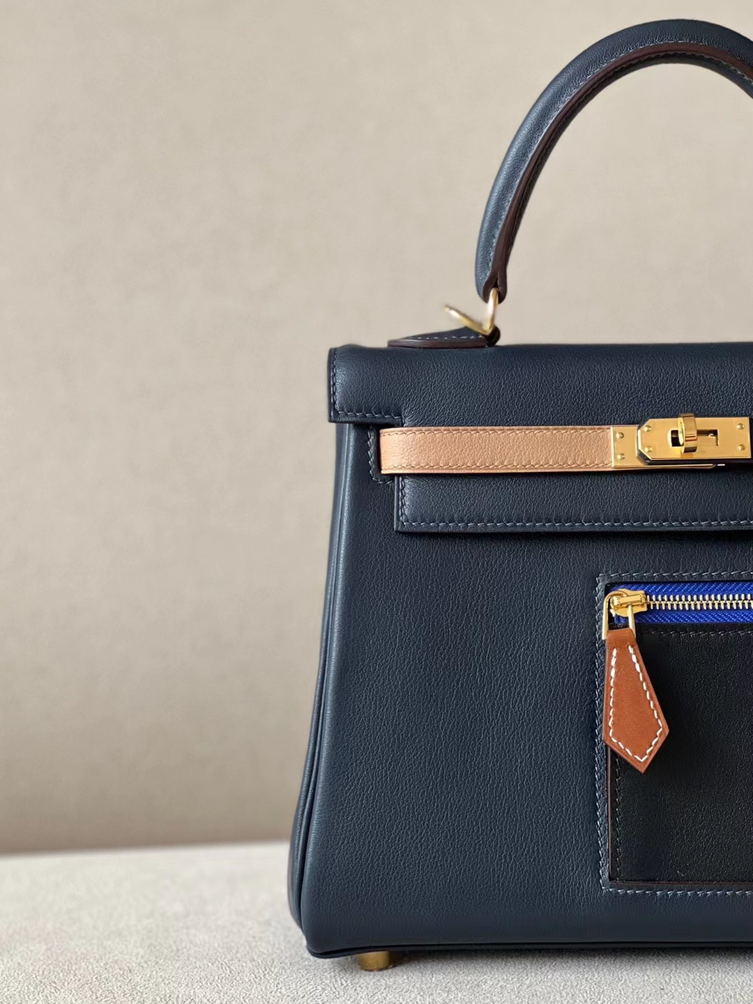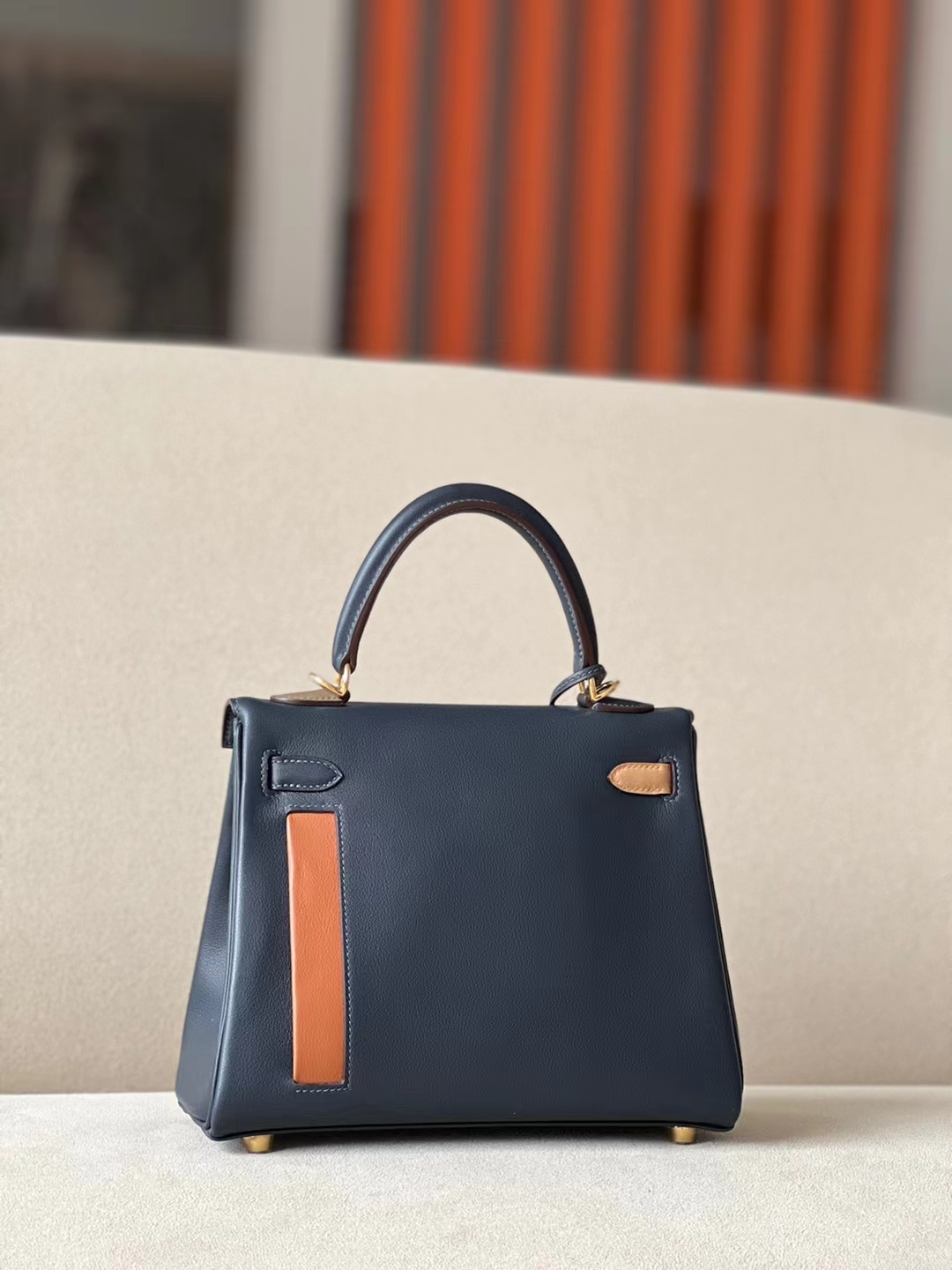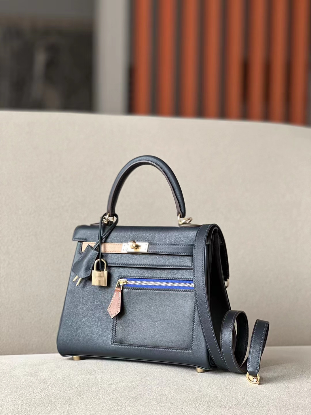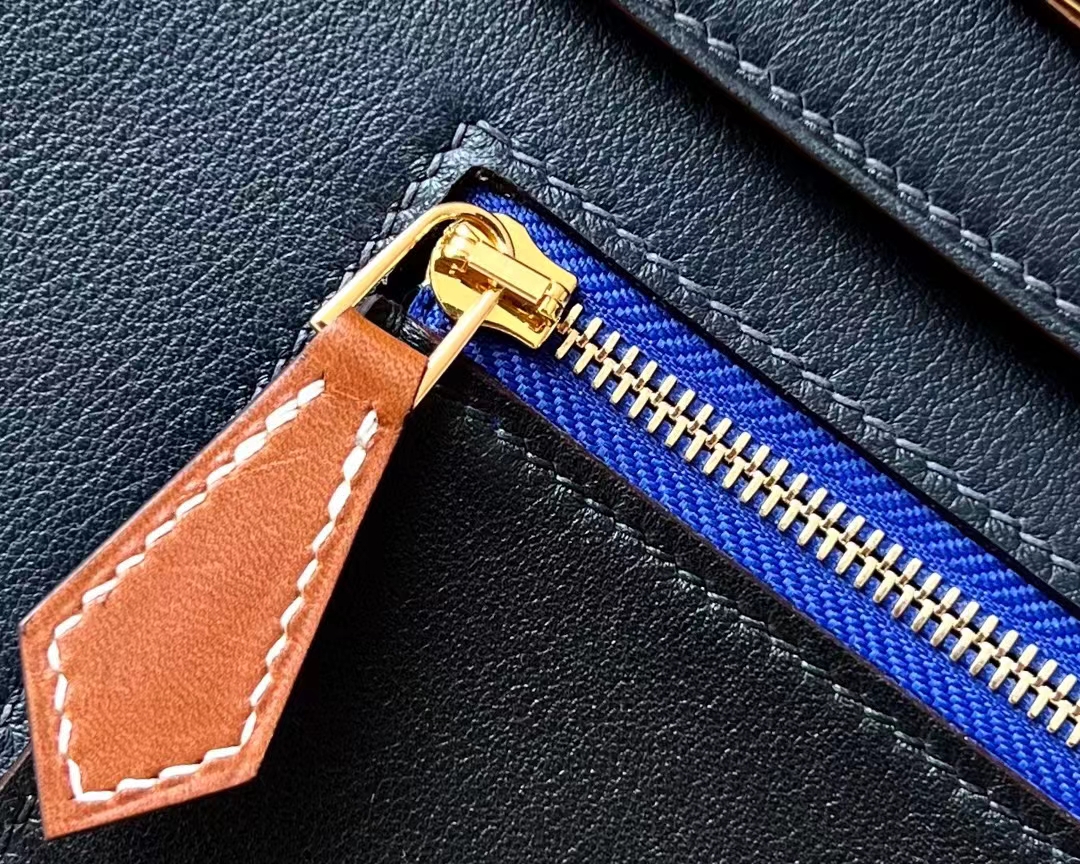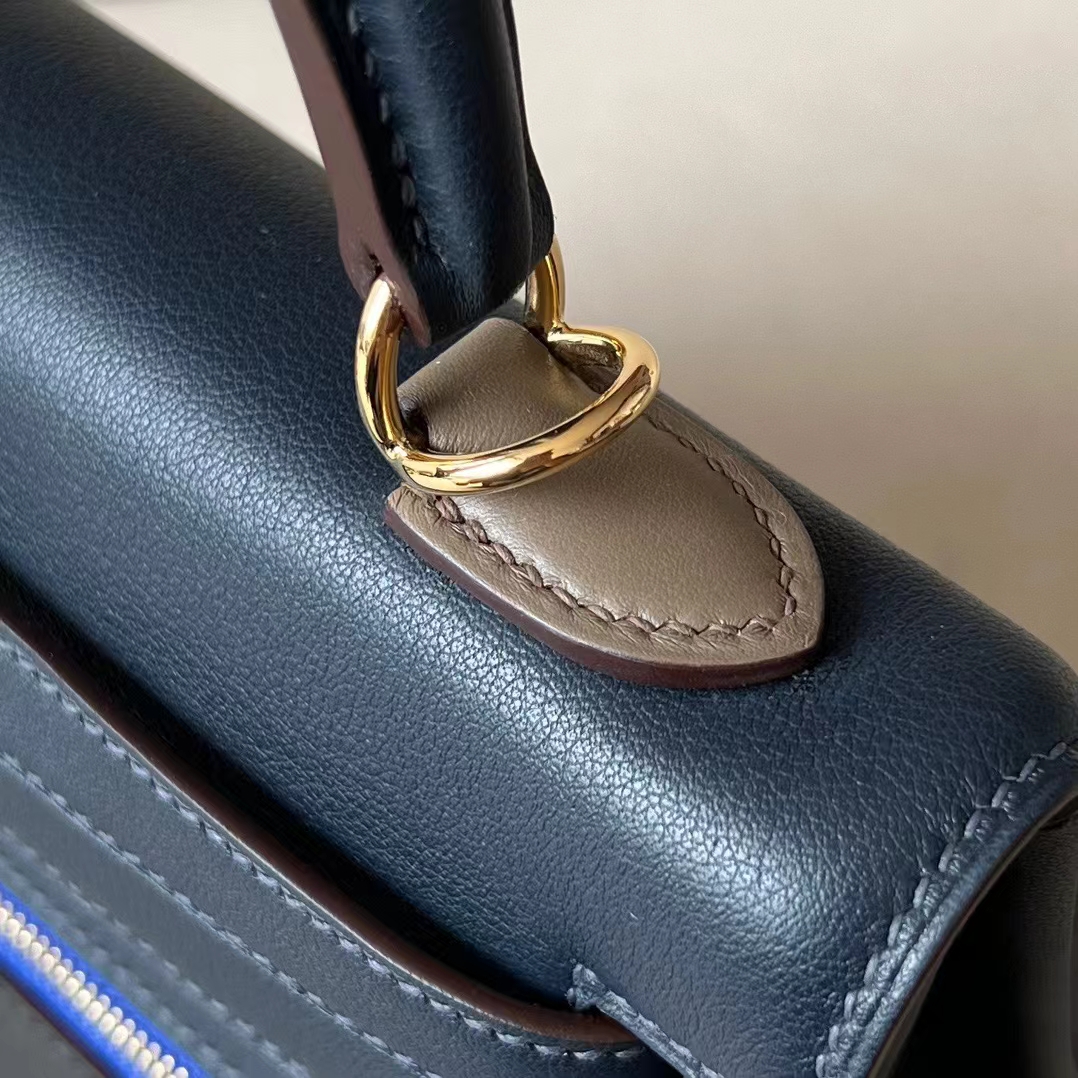 DesignerReps Kelly Swift 2S Deep Blue & CK89 Black & CK37 Golden Brown & OM Khaki & 08 Bright Blue Gold Hardware 25cm Full Handmade