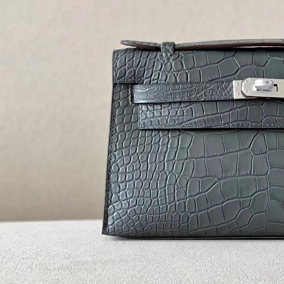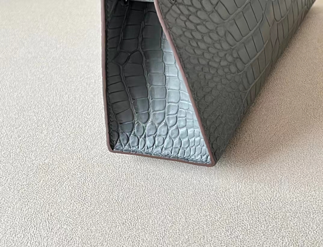 DesignerReps mini Kelly pochette Matte Alligator tinware grey Silver Hardware 22cm Full Handmade