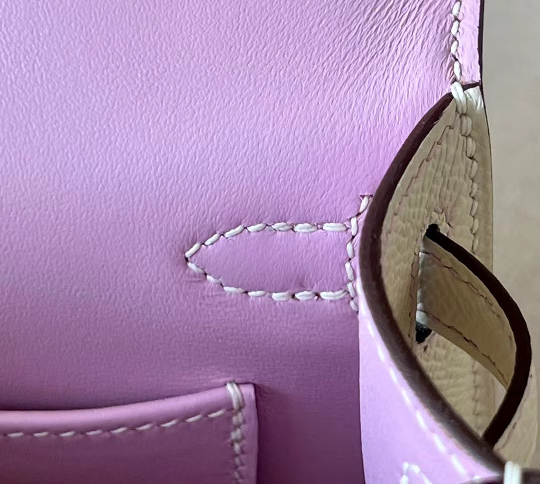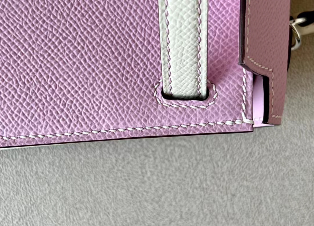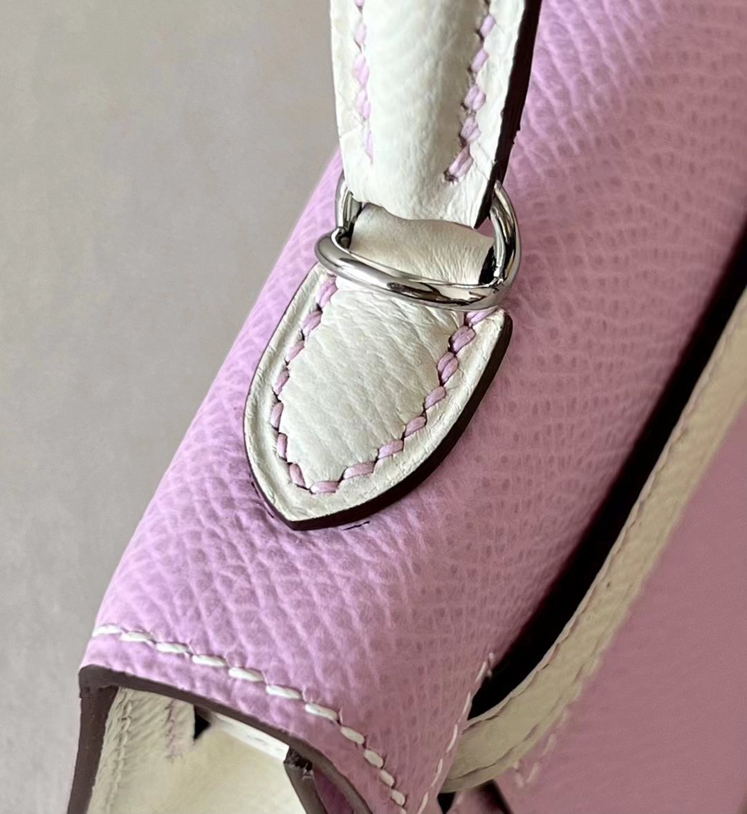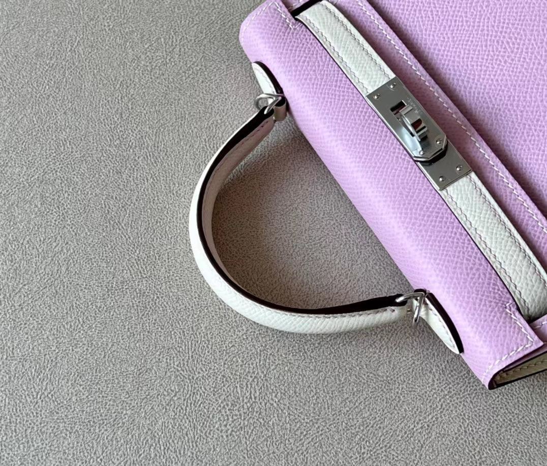 DesignerReps mini Kelly Epsom X9 mallow purple & Creamy White Silver Hardware 19cm Full Handmade