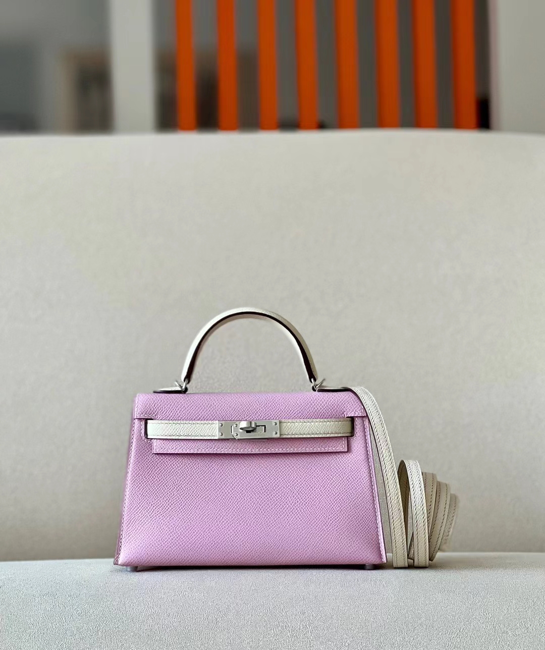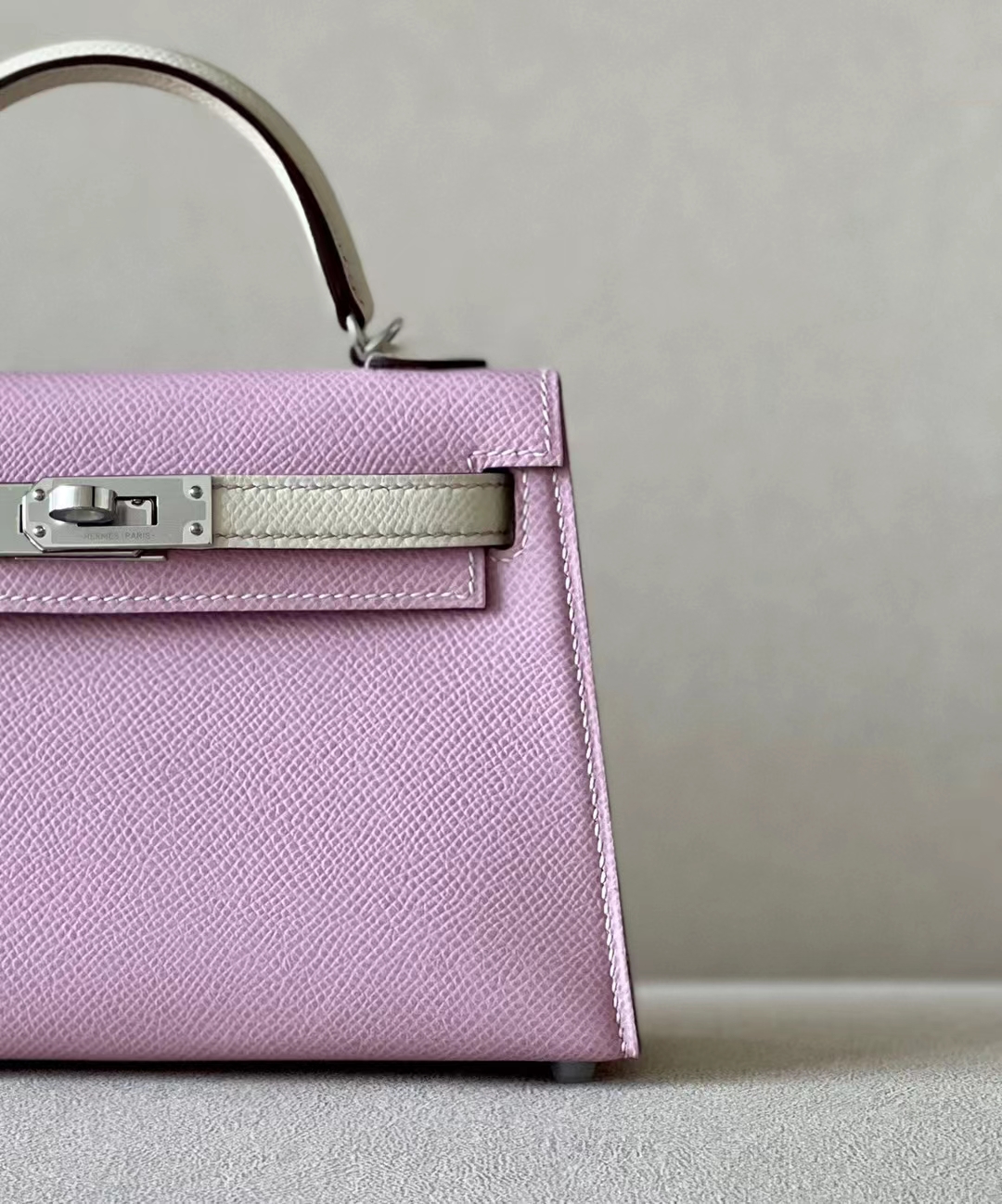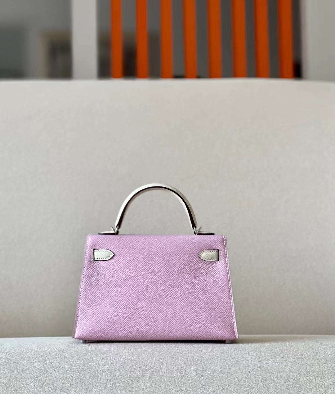 DesignerReps mini Kelly Epsom X9 mallow purple & Creamy White Silver Hardware 19cm Full Handmade