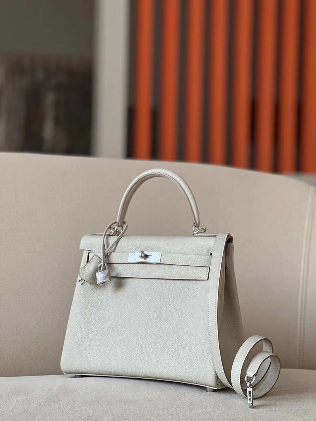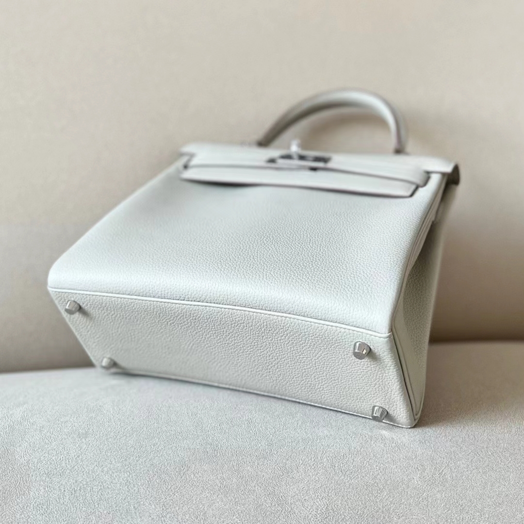 DesignerReps Kelly Togo 80 Pearl grey Silver Hardware 28cm Full Handmade