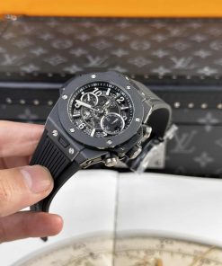Hublot Big Bang Skeleton Tourbillon Black Ceramic Leather Replica 45mm