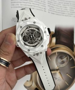 Hublot Big Bang Sang Bleu II White Ceramic Rubber Top Quality Replica BBF 45mm
