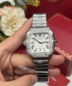 Cartier Santos White Dial Two Tone Large Model Iced Out Moissanite 39.8mm