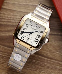 Cartier Santos Two Tone Yellow Gold White Dial Large Model Best Replica BVF 39.8mm