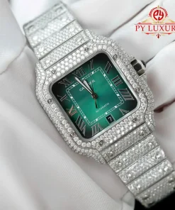 Cartier Santos Large Model Green Roman Dial Iced Out Moissanite Best Replica 39.8mm