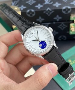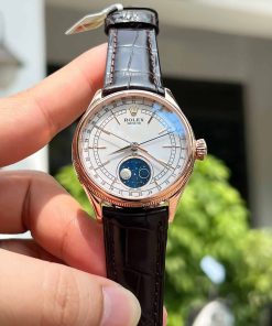 Rolex Cellini Moonphase White Gold Moonphase White Dial Leather Replica 39mm