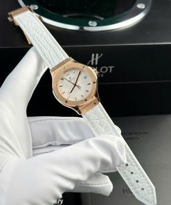 Hublot Classic Fusion King Gold White Dial Leather Strap Ladies Replica 33mm