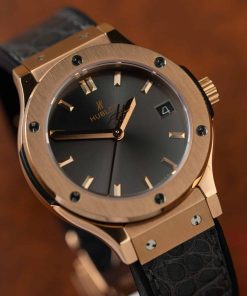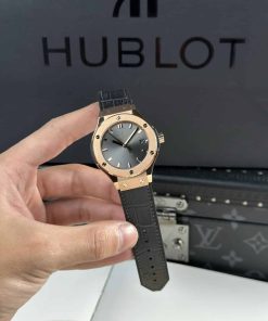 Hublot Classic Fusion King Gold Grey Dial Leather Strap Lady Watch Replica 33mm