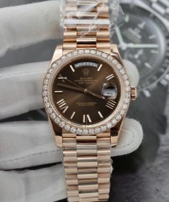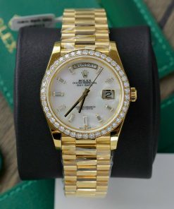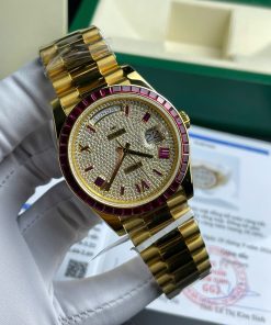 Rolex Day-Date 228398TRU 18K Yellow Gold Wrapped Custom Moissanite Dial Ruby Bezel Best Replica 40mm