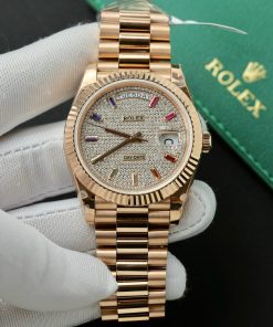 Rolex Day-Date 40 228235 Rose Gold Custom Moissanite Rainbow Dial Best Replica