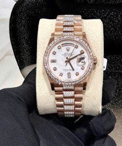 Rolex Day-Date 36 Meteorite Dial 18K Rose Gold Wrapped Custom Moissanite Dial & Moissanite Bracelet Best Replica 36mm