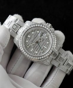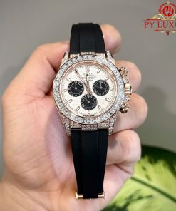 Rolex Daytona Meteorite Dial 18K Gold Plated Custom Baguette Moissanite Rubber Strap 40mm