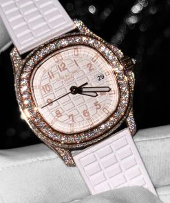 Patek Philippe Aquanaut 5068R 18K Gold Wrapped Custom Moissanite Swiss Quartz Replica PPF 35.6mm