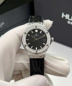 Hublot Classic Fusion Titanium Pavé Black Dial Custom Moissanite Leather Strap Best Replica 33mm