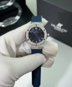 Hublot Classic Fusion Titanium Pavé Blue Dial Rubber Custom Moissanite 33mm