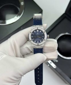 Hublot Classic Fusion Titanium Pavé Blue Dial Leather Custom Moissanite 33mm