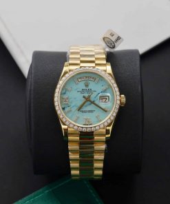 Rolex Day-Date 128348RBR-0037 Turquoise Dial 18K Yellow Gold Wrapped Moissanite Bezel 36mm