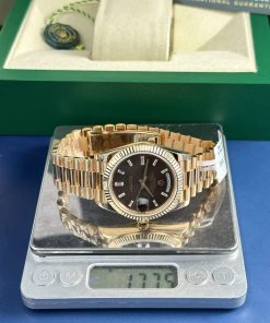 Rolex Day-Date 228235 Baguette Diamond Paved Dial 18K Gold Wrapped Custom Baguette Moissanite Bezel Best Replica 40mm
