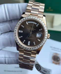 Rolex Day-Date 228345RBR Chocolate Baguette Dial 18K Gold Wrapped Moissanite Bezel 174g GMF V3 40mm