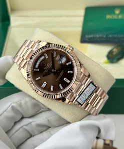 Rolex Day-Date 228235-0003 Chocolate Baguette Diamond Dial 18K Solid Rose Gold 40mm