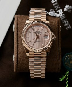 Rolex Day-Date 228235 Sundust Stripe Index Dial 18K Rose Gold Wrapped Best Replica V3 GMF 40mm