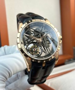 Roger Dubuis Excalibur Skeleton RDDBEX0393 Tourbillon Black Leather Best Replica BBR 42mm
