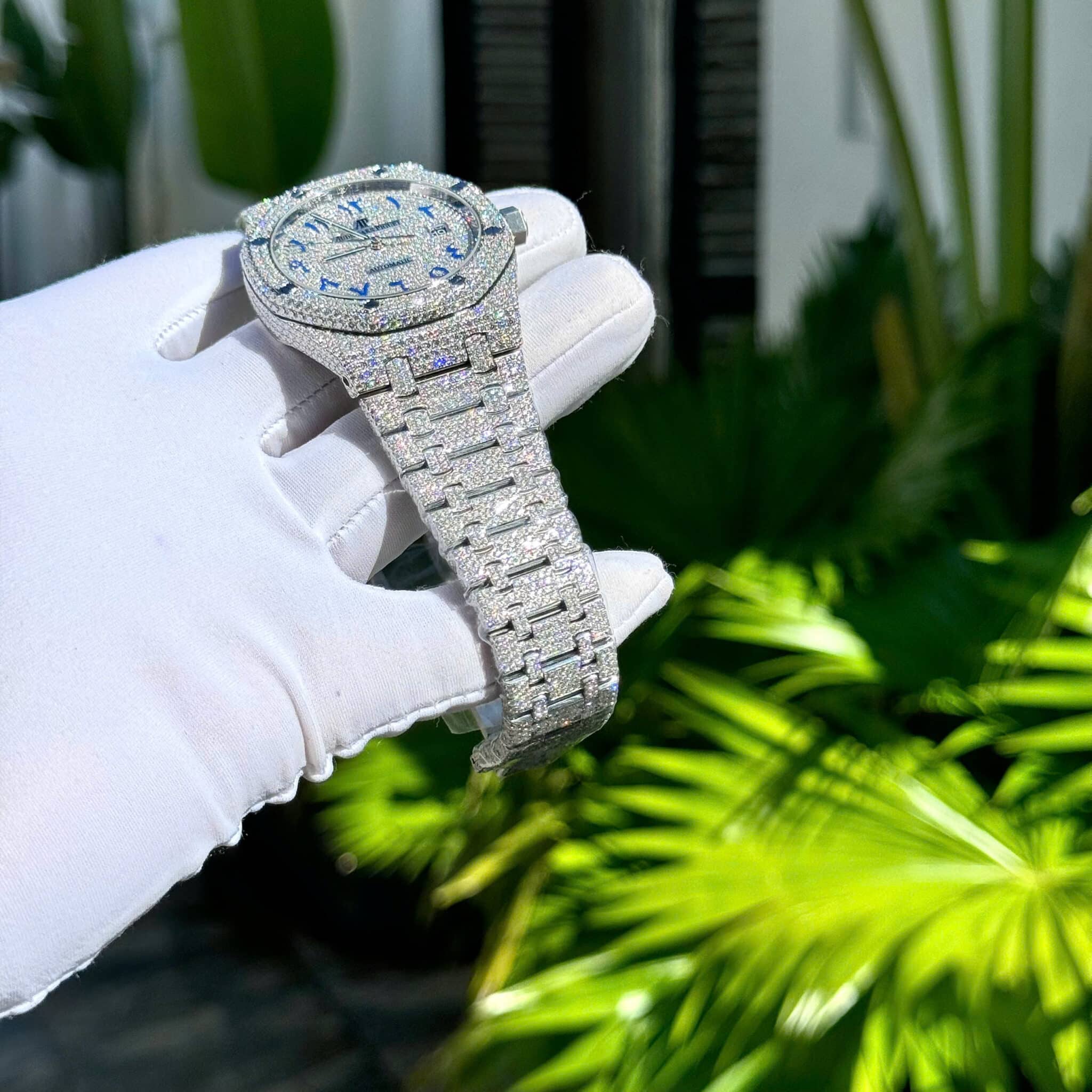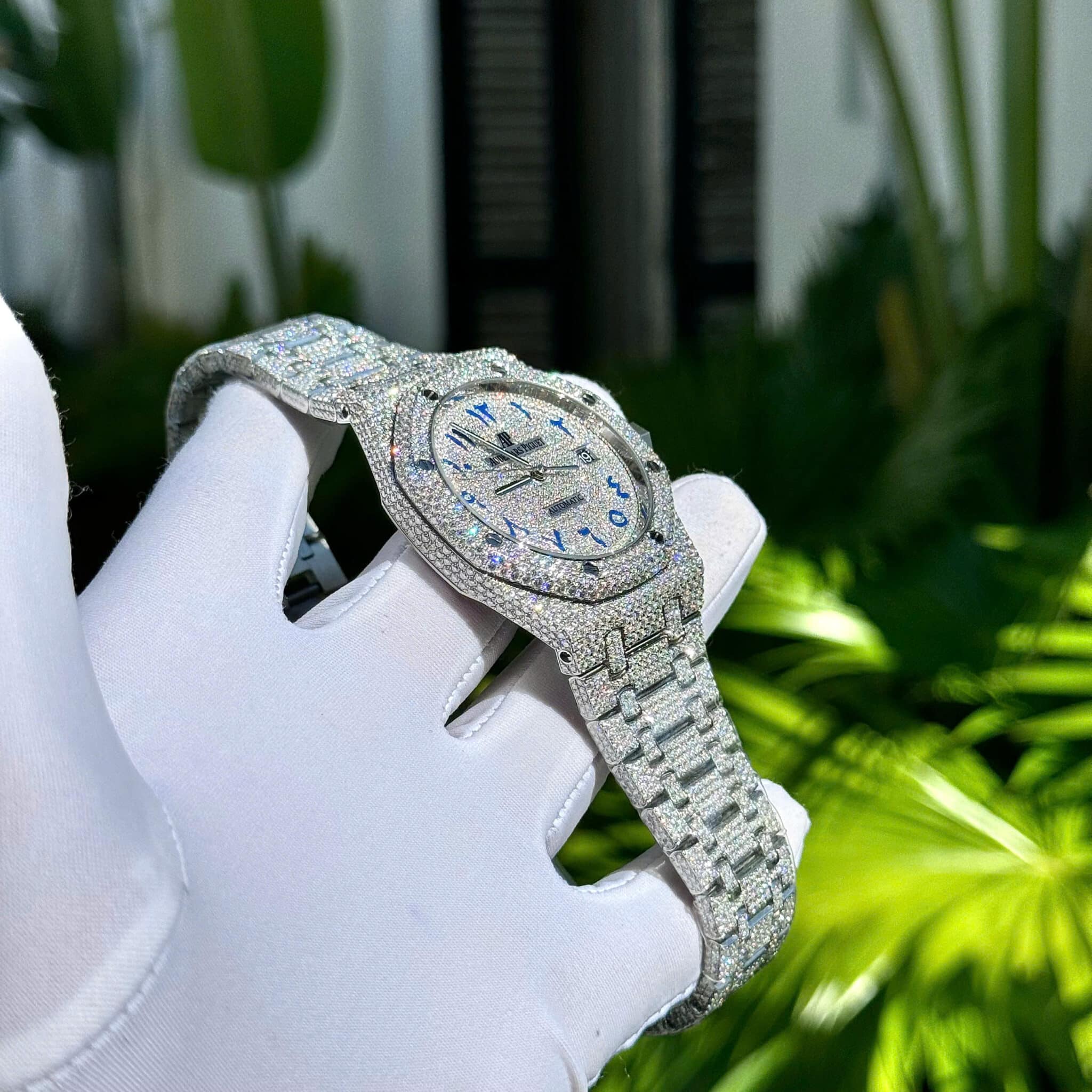 - Case Material: 316L Stainless Steel Iced Out Moissanite