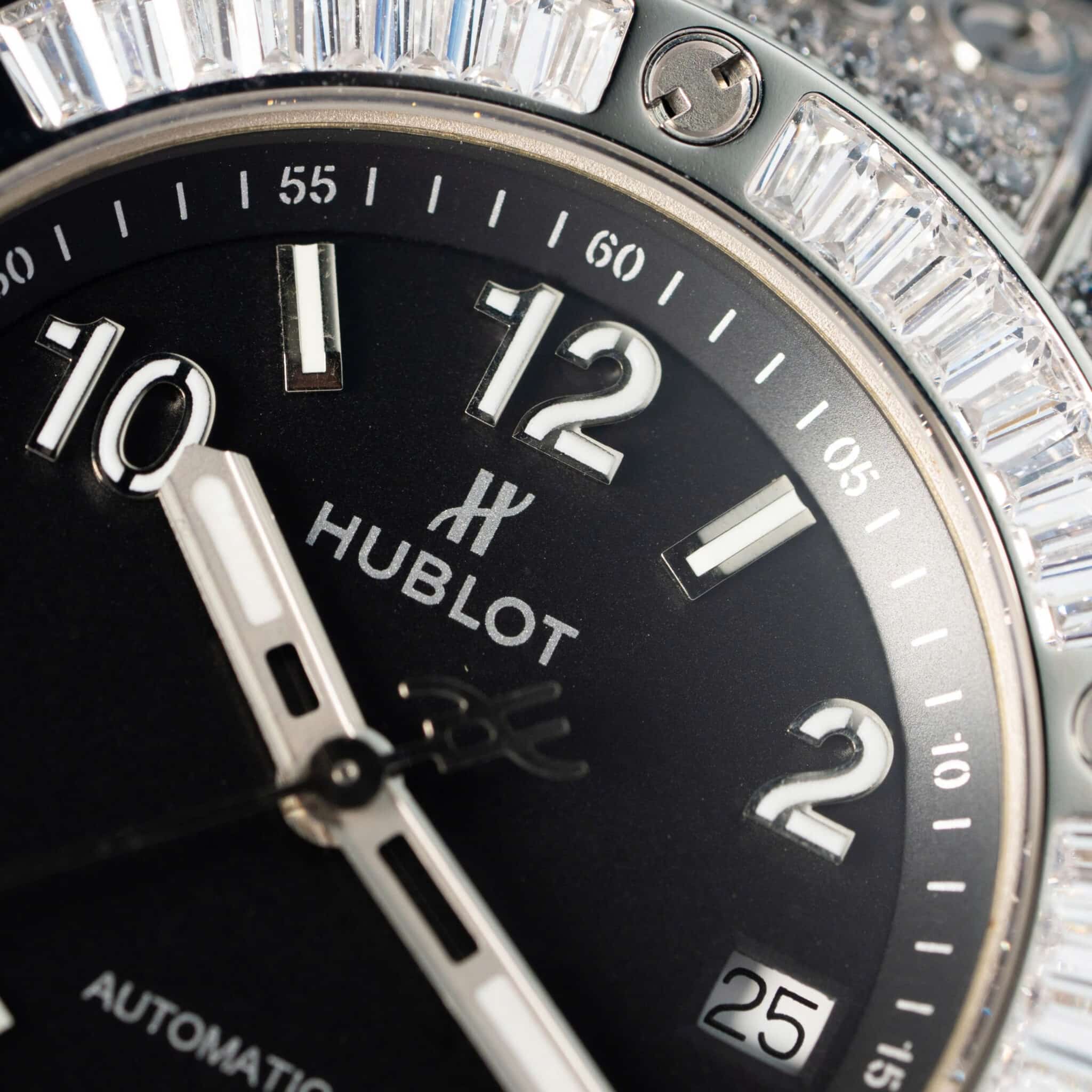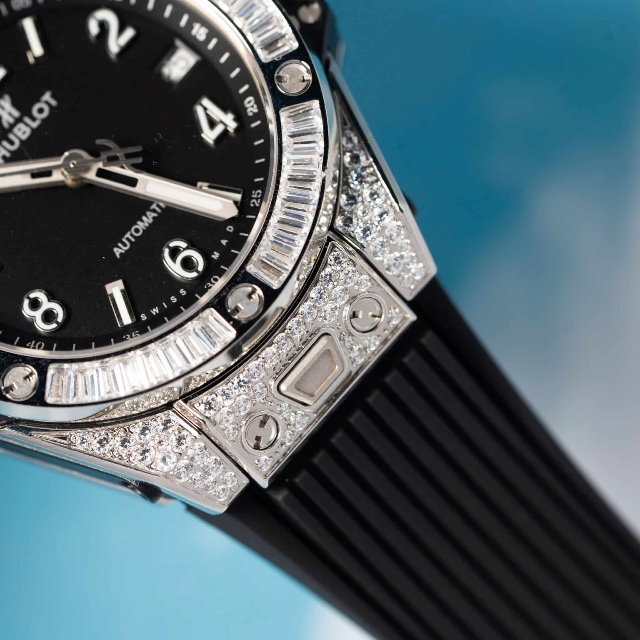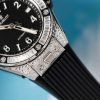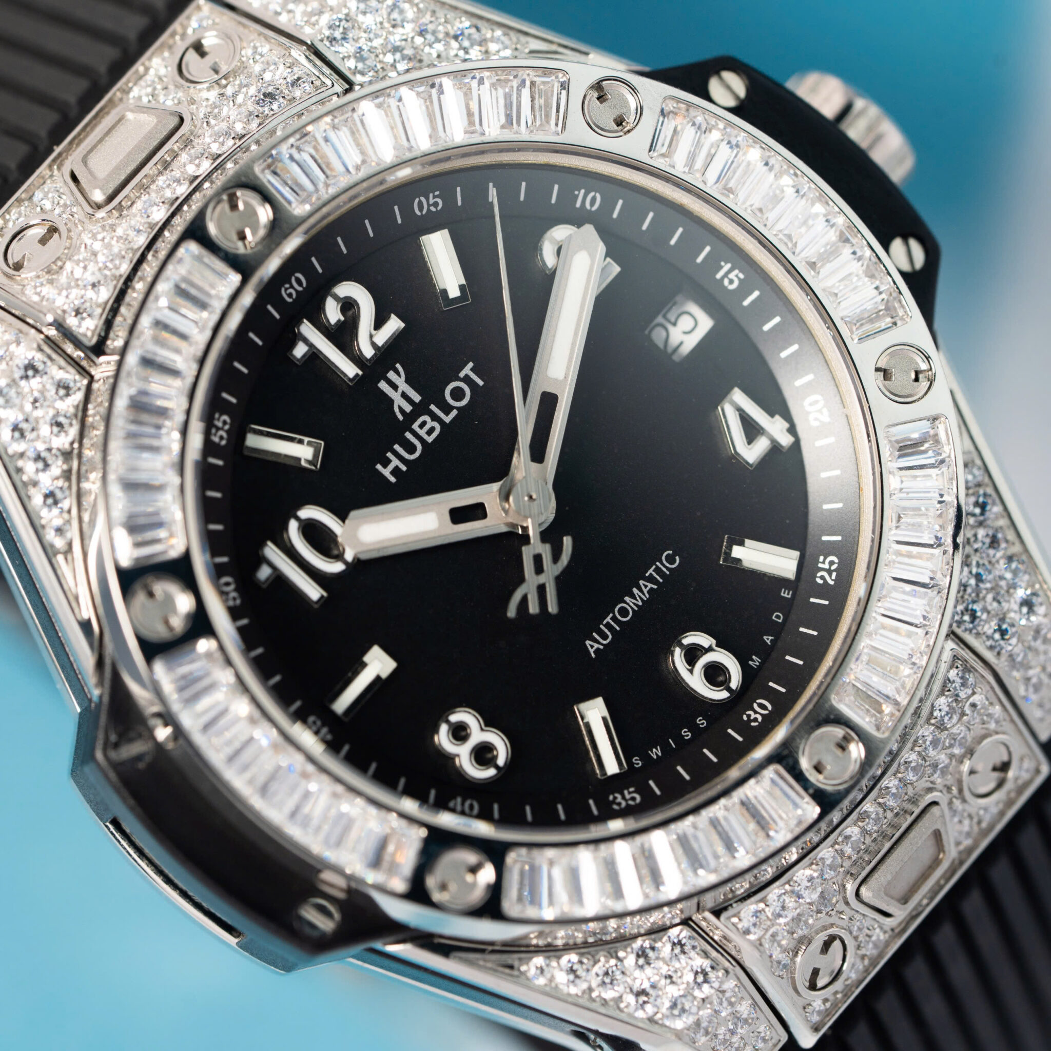 Hublot Big Bang One Click Steel Black Pavé Baguette CZ Stone Bezel Replica 39mm