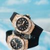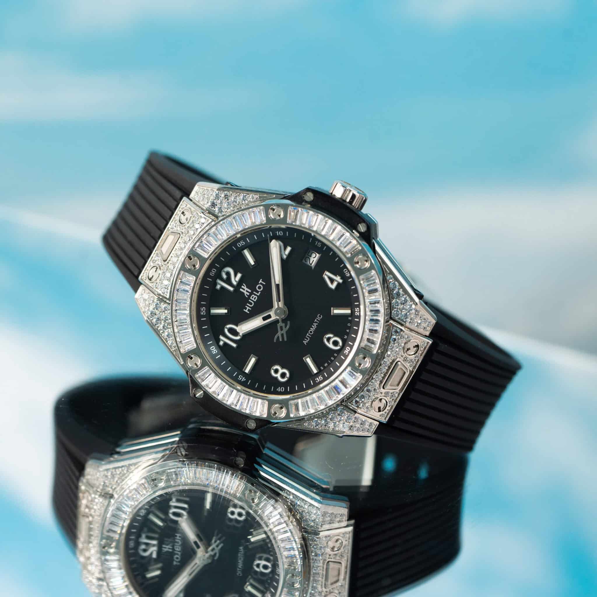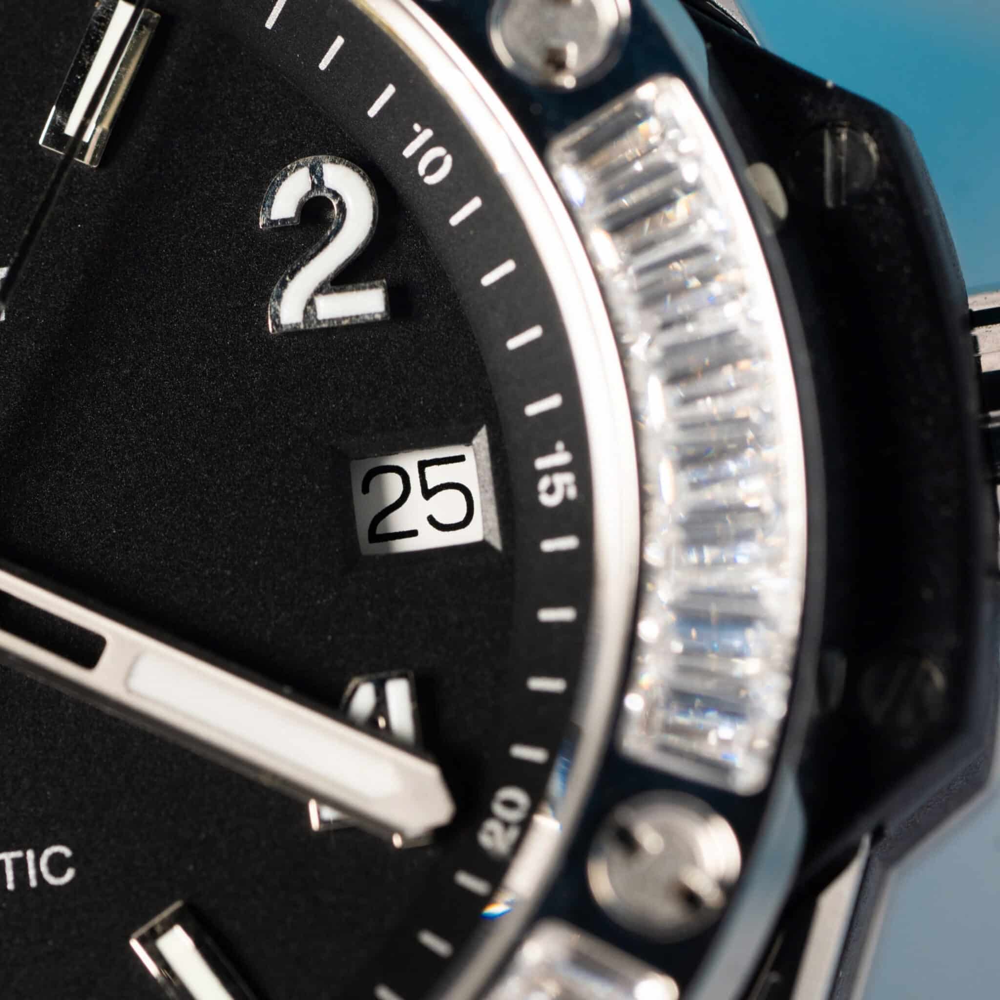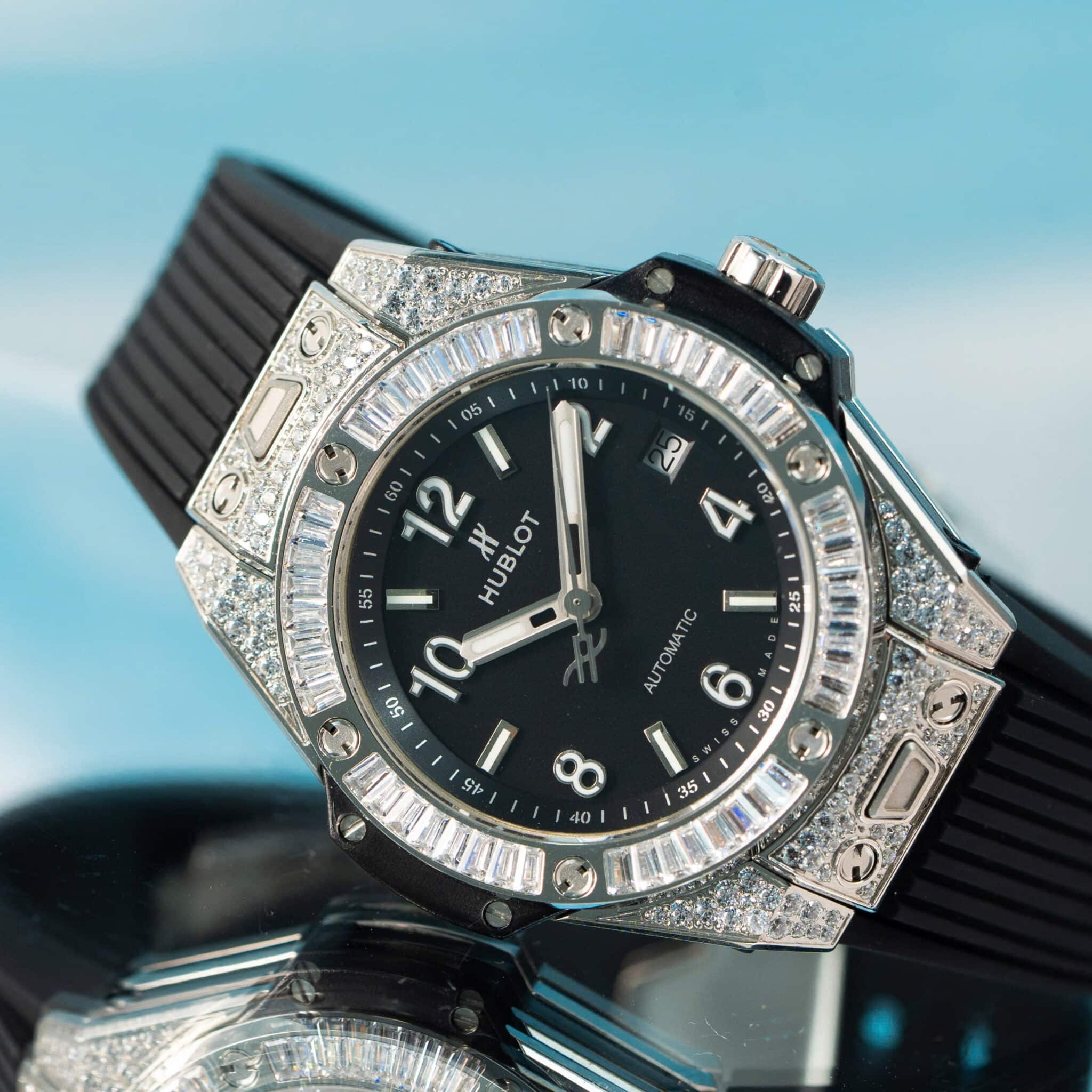 Hublot Big Bang One Click Steel Black Pavé Baguette CZ Stone Bezel Replica 39mm