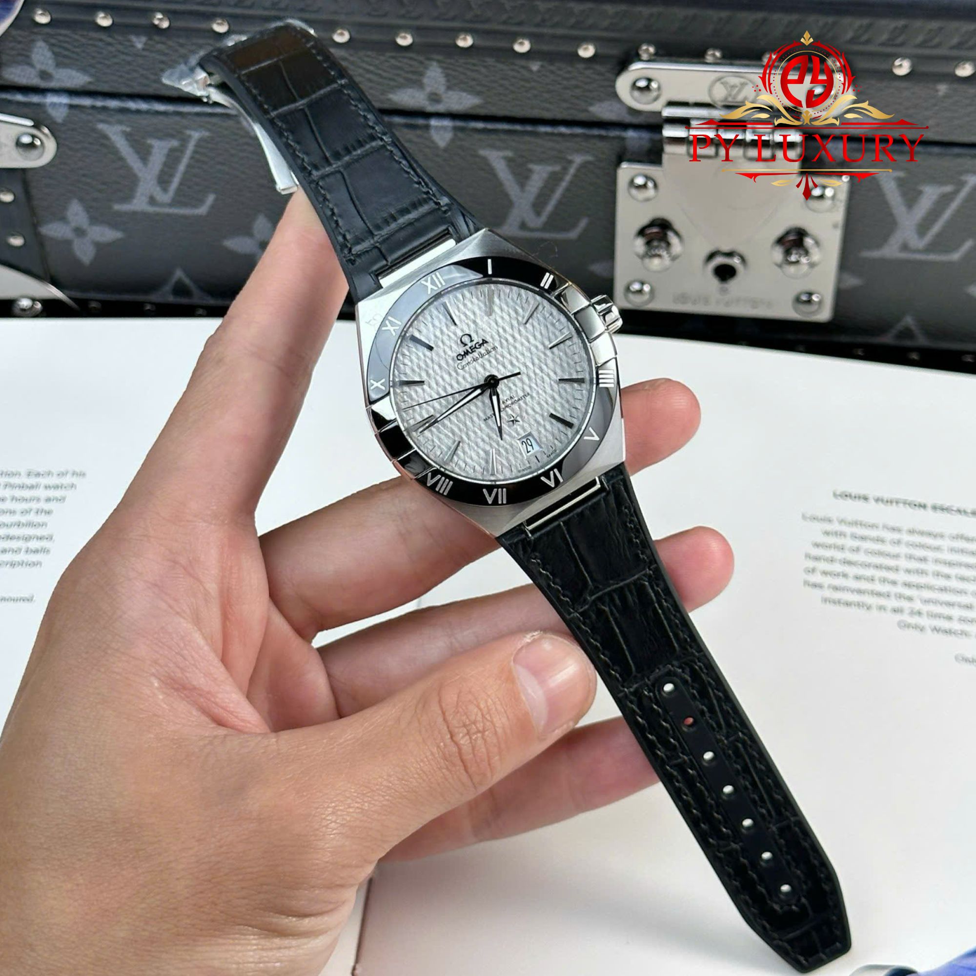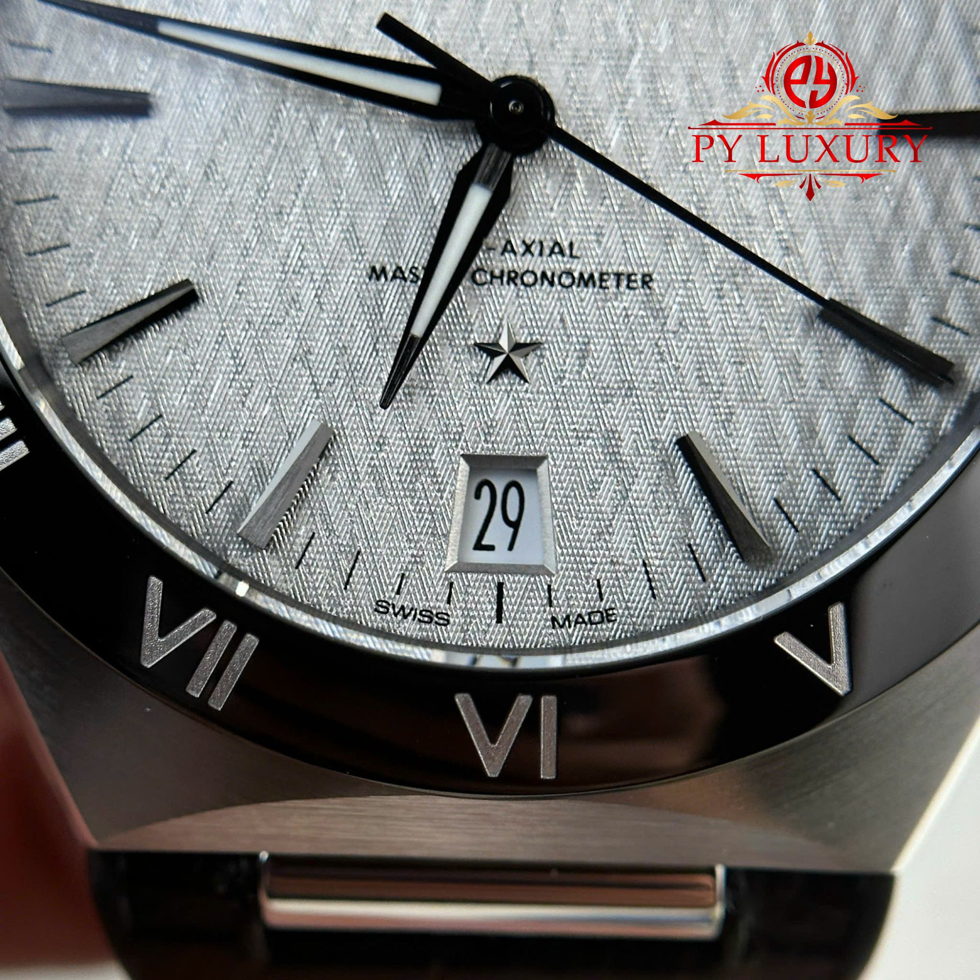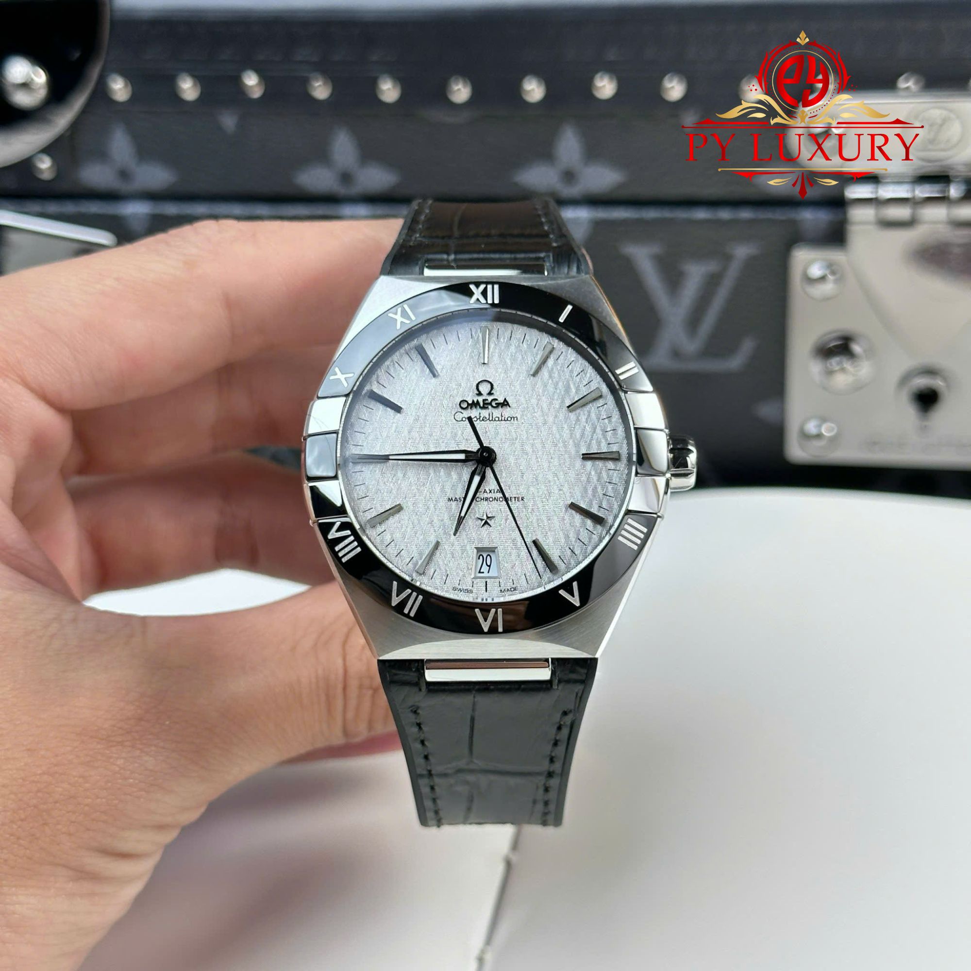 Omega Constellation Rhodium Grey Dial Black Ceramic Bezel Leather Strap Best Replica VSF 41mm