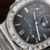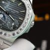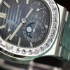 Patek Philippe Nautilus 5712 Blue Dial Baguette Stone Bezel Bracelet Full Functions PPF Best Replica 40mm
