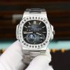 Patek Philippe Nautilus 5712 Blue Dial Baguette Stone Bezel Bracelet Full Functions PPF Best Replica 40mm